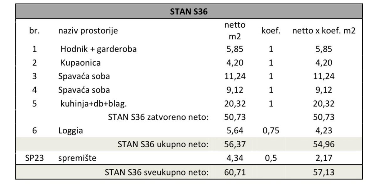 Na prodej je stan na 3. katu višestambene zgrade s liftom. Stan će se sastojati od ulaznog hodnika + garderobe, 2 spavaće sobe, kupaonice, kuhinje s blagovaonicom te dnevnog boravka i loggie.