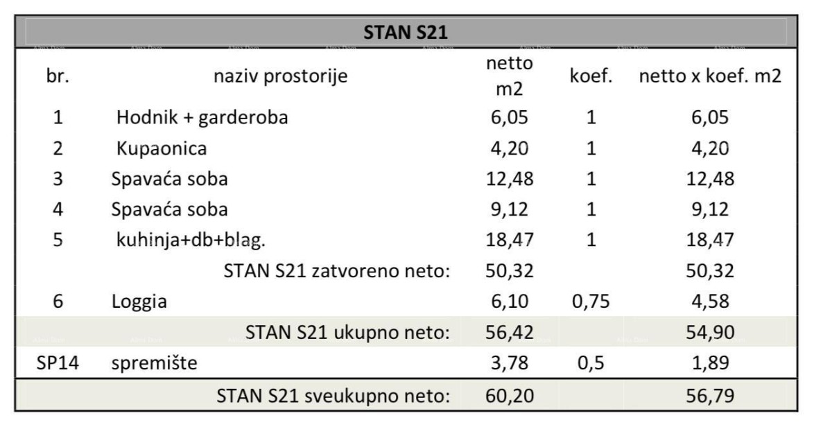 Cijena stana s parkirnim mjestom i spremištem iznosi: 216.324 eura.