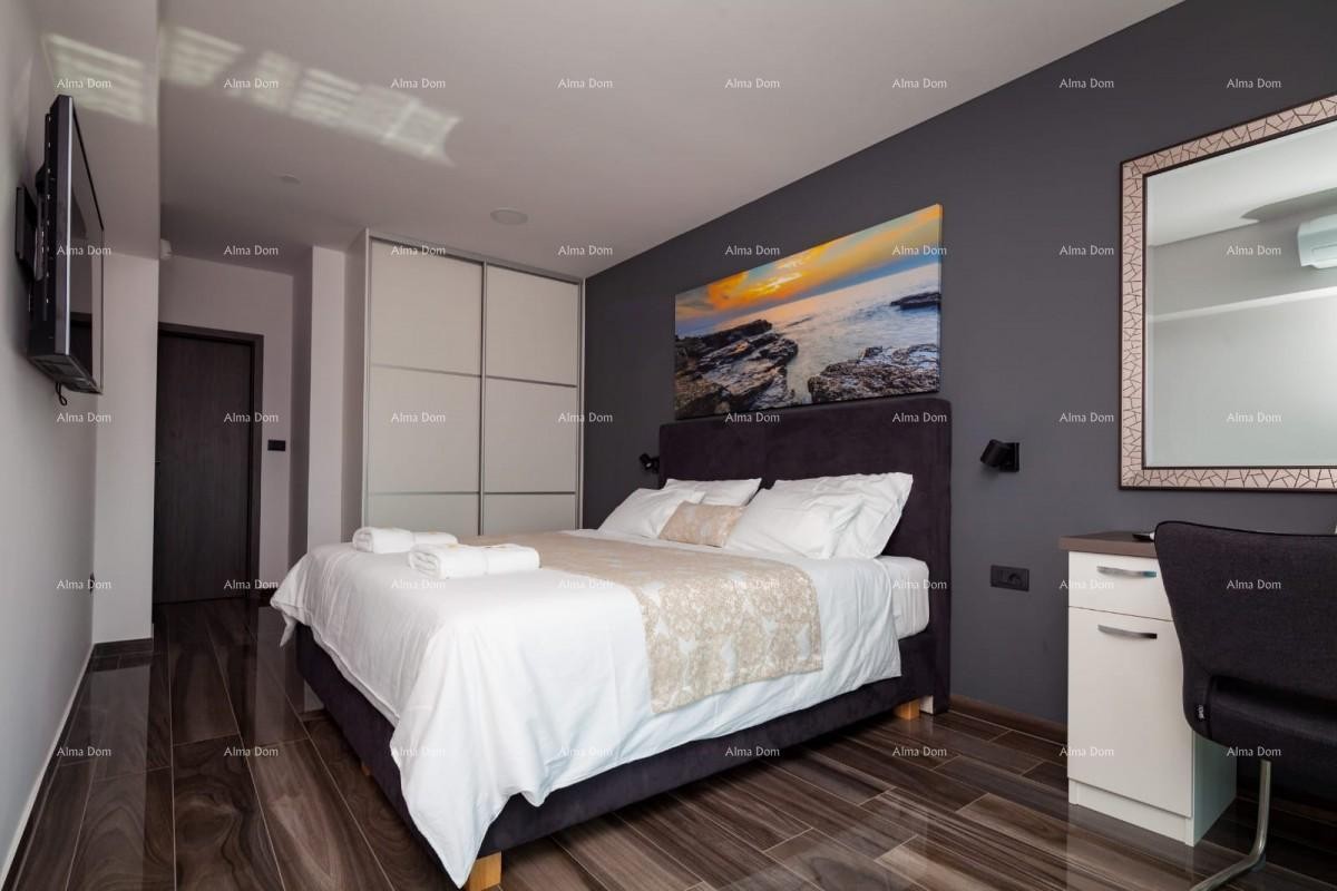Obytná plocha 480m2. V přízemí se nachází obývací pokoj, kuchyně, kulečník, WC pro hosty. V 1. patře jsou čtyři ložnice, každý pokoj má vlastní koupelnu a výhled na moře. Každý pokoj má přístup na velkou terasu. Ve 2. patře je další ložnice s výhledem na moře, posilovna, jacuzzi, sauna, velká terasa.