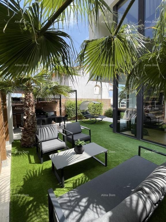 Luxusní vila s obytnou plochou 400 m2 se nachází na pozemku 496 m2 a nachází se v klidné části Medulinu v blízkosti lesoparku, 1 km od moře, obchodů, restaurací, kaváren a veškerého důležitého zázemí pro život a jeho zvláštností jsou prosklené stěny, které umožňují nerušený výhled na moře téměř ze všech pokojů ve vile.