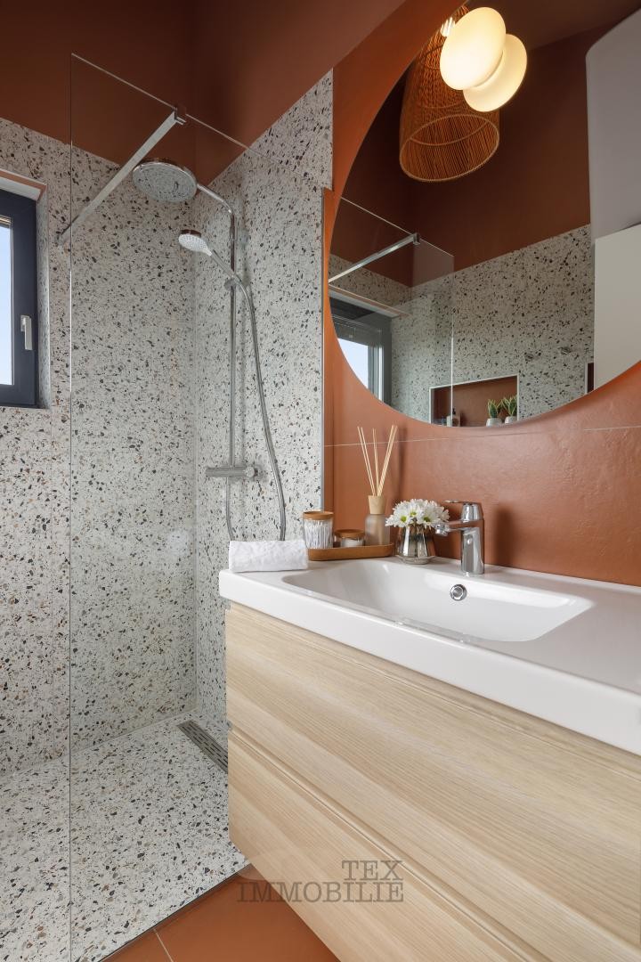Im Erdgeschoss befindet sich eine großzügige und helle Küche, die mit dem Wohn- und Essbereich verbunden ist und somit einen gemütlichen und funktionalen offenen Raum schafft.