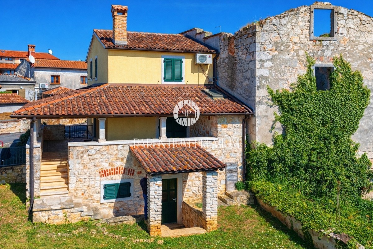 In einem ruhigen istrischen Dorf, unweit von Poreč, befindet sich dieses charmante Steinhaus, das vollständig im traditionellen istrischen Stil renoviert wurde und Authentizität sowie ganzjährigen Wohnkomfort bietet.