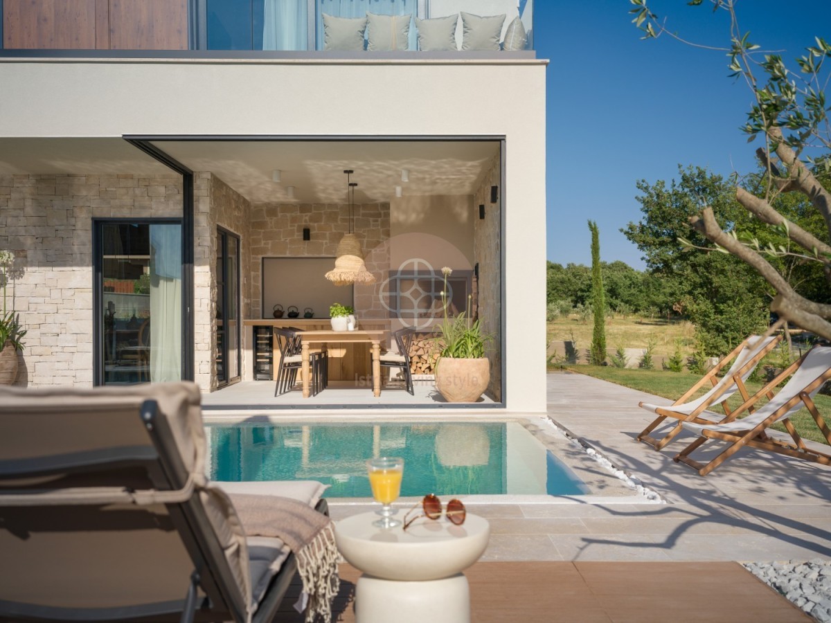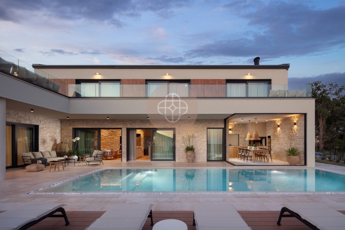 Diese elegante Designervilla ist eine hervorragende Investition für die touristische Vermietung oder als luxuriöses Familienhaus. Eine perfekte Kombination aus traditionellem istrischen Charme und modernem Luxus bietet höchsten Komfort, Privatsphäre und Stil.