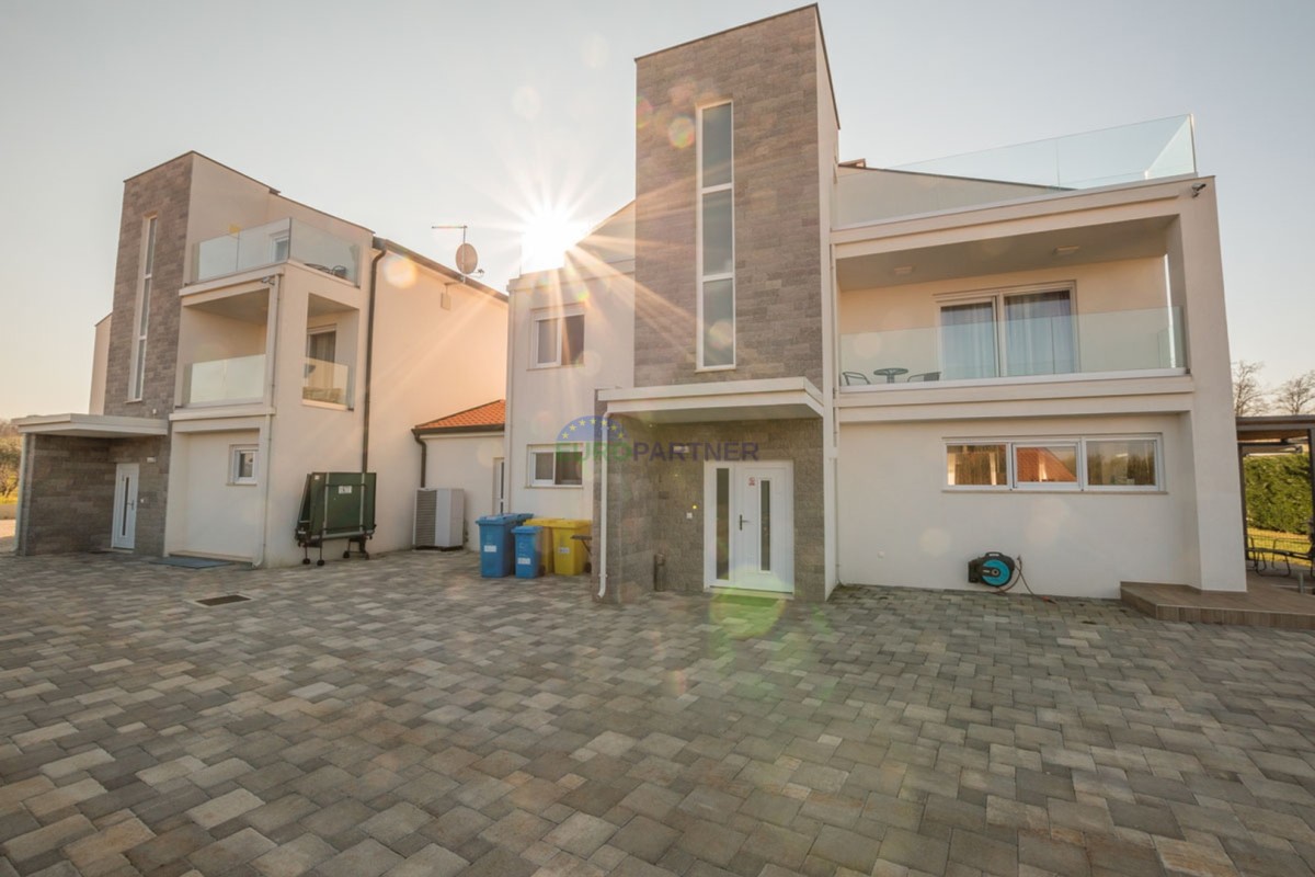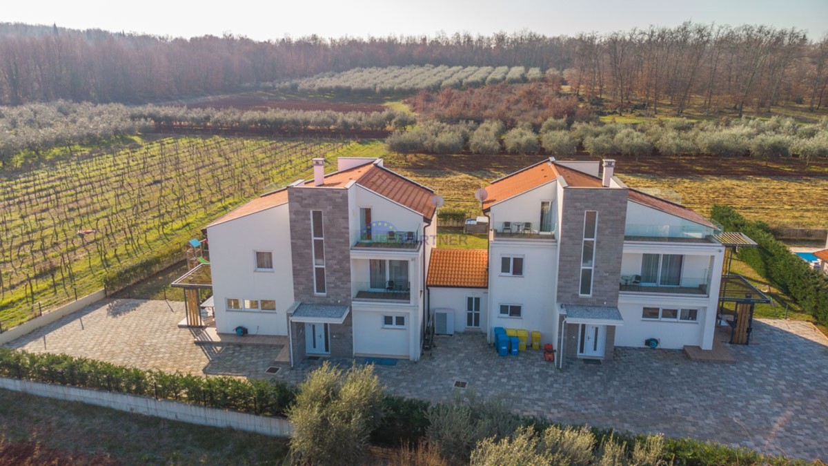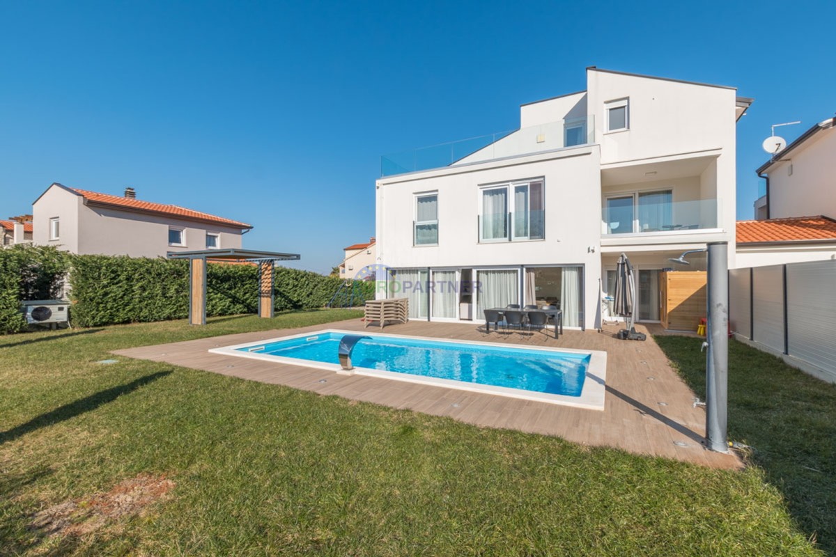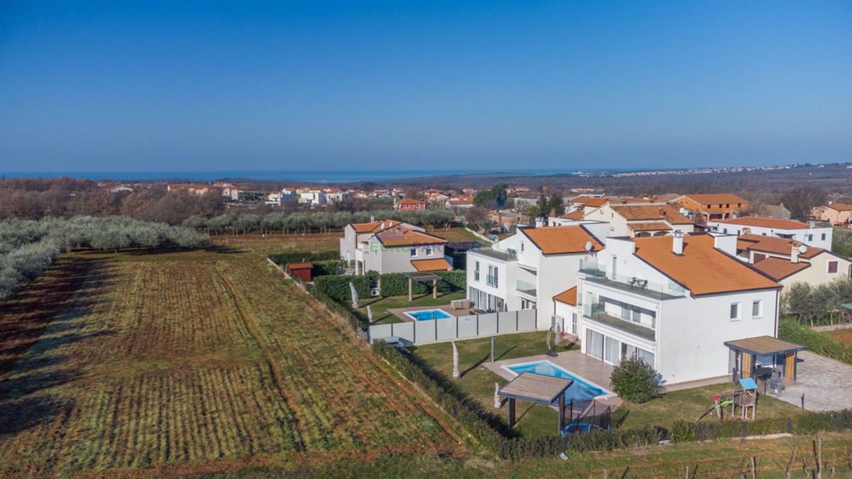 An einem ruhigen Ort, 5 km von der Stadt Poreč und 2 km vom Strand entfernt, befindet sich diese exklusive moderne Doppelhaushälfte.