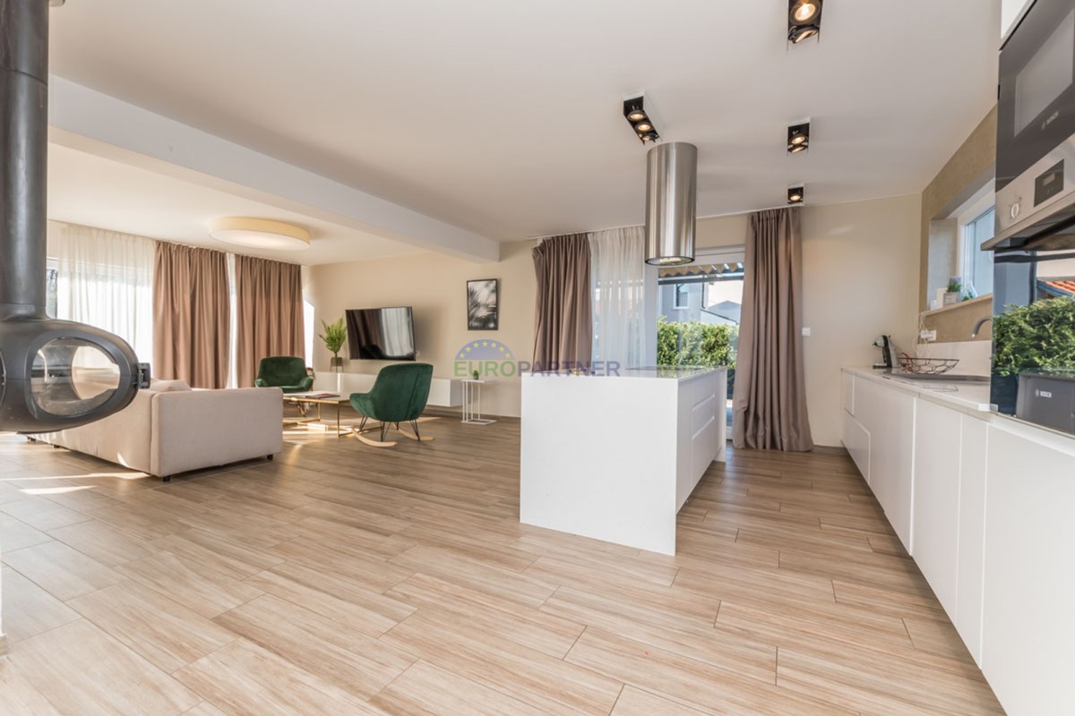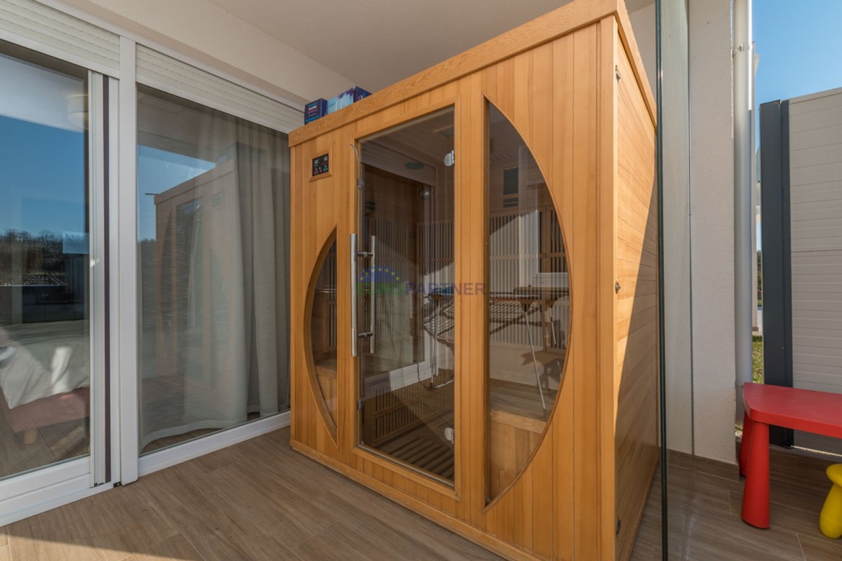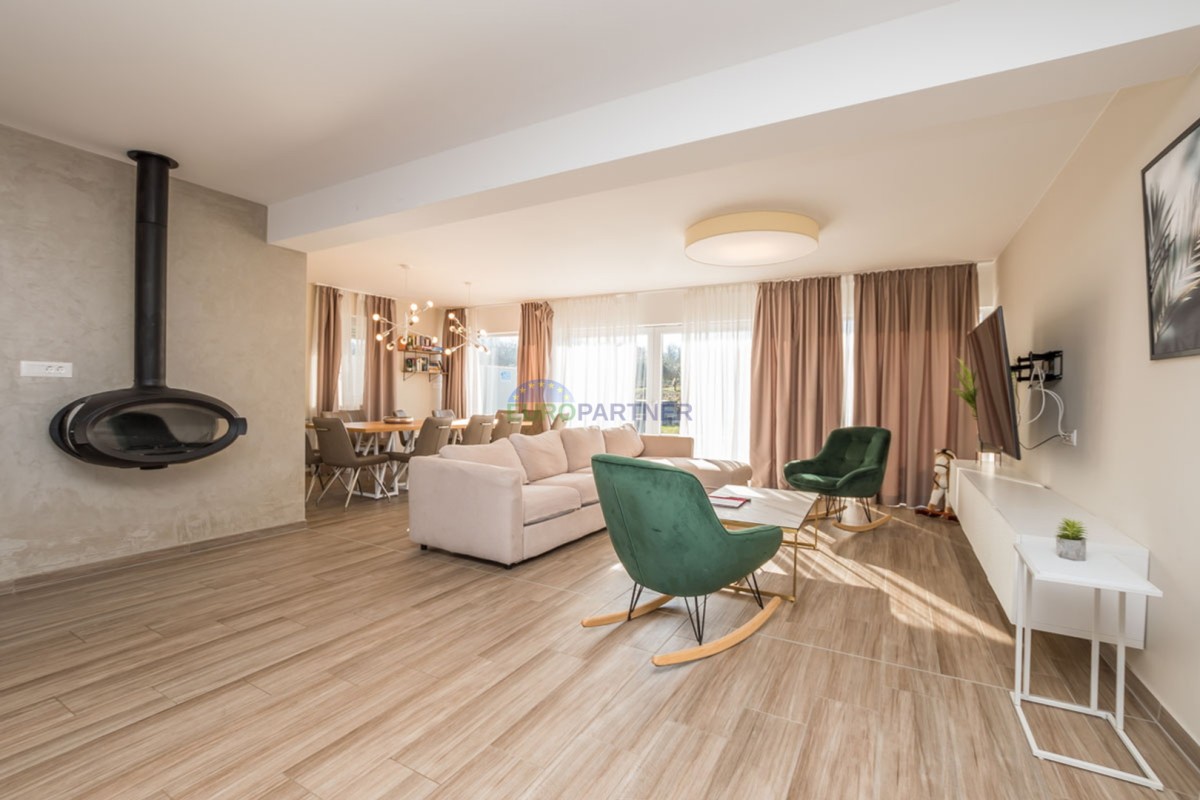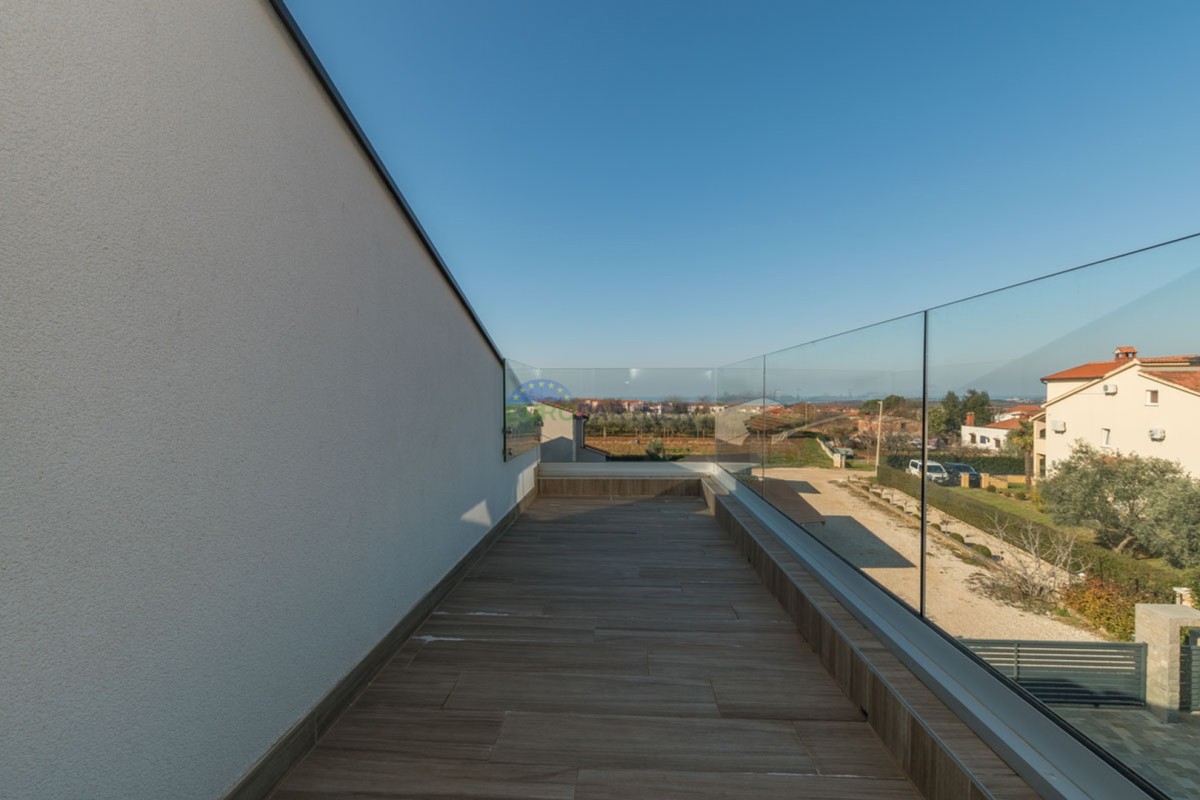 An einem ruhigen Ort, 5 km von der Stadt Poreč und 2 km vom Strand entfernt, befindet sich diese exklusive moderne Doppelhaushälfte.