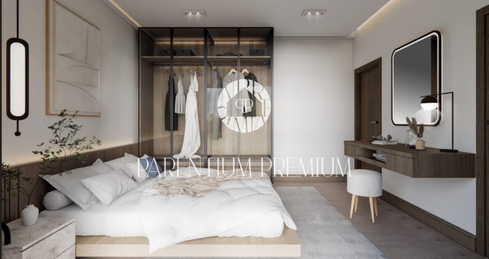 Im Erdgeschoss wird es ein offenes Wohnzimmer mit Esszimmer und Küche geben, von dem aus Sie direkt in den beheizten Swimmingpool gelangen können, der teilweise mit einer Holzpergola überdacht und von zwei überdachten Terrassen umgeben sein wird und eine Liegewiese. Auf dieser Etage befindet sich ein Hauptschlafzimmer mit eigenem Bad und Ankleideraum, eine Waschküche, eine Gästetoilette und ein Heizraum im Außenbereich.