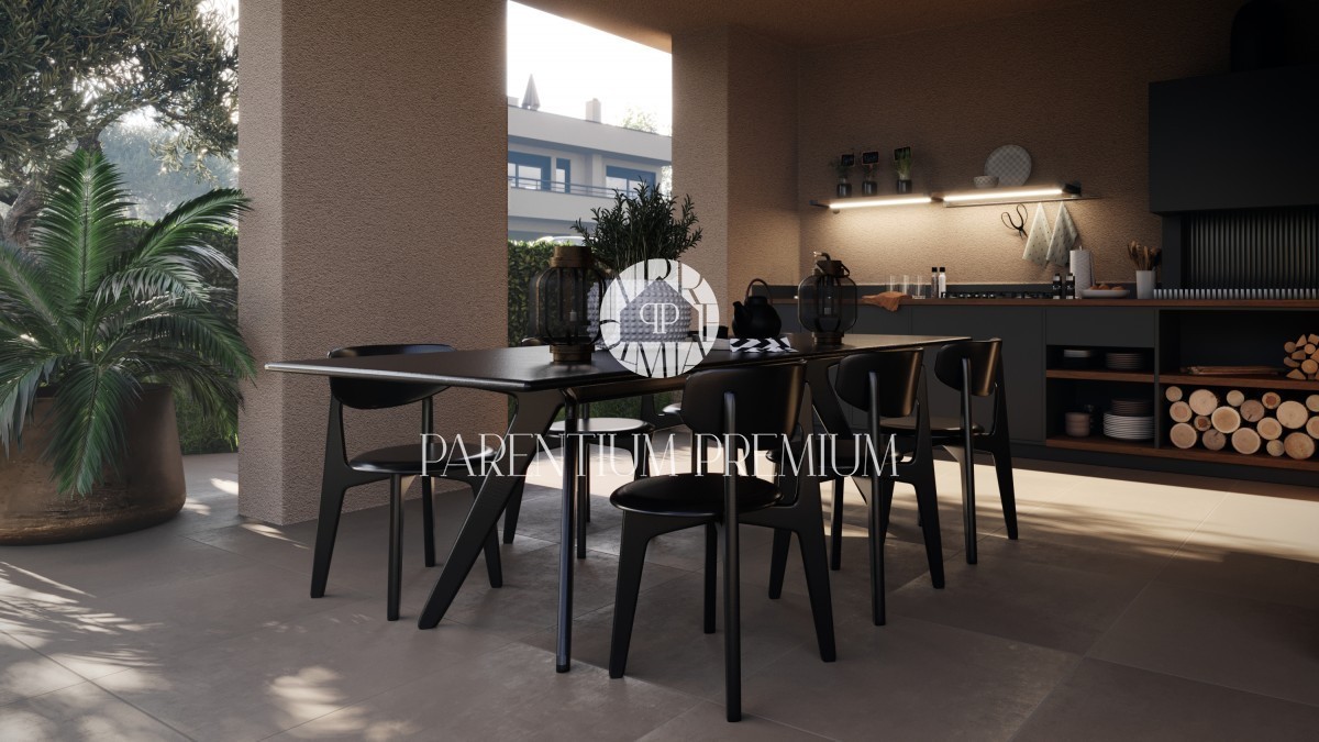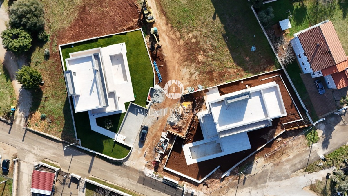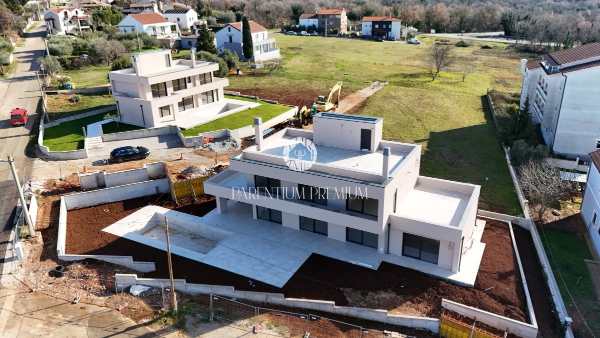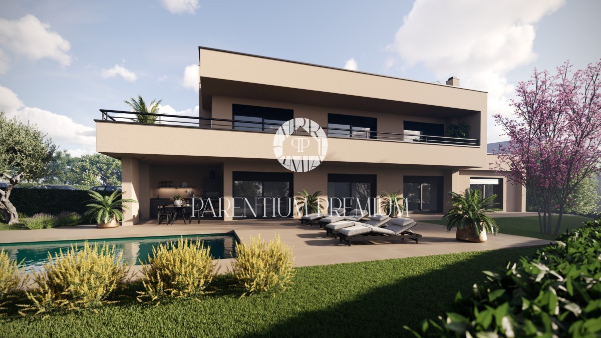 Diese imposante moderne Villa mit Pool von einer Gesamtfläche von bruto 307 m2 ,netto 263,6 m² und einer großen Dachterrasse von 97,1 m² befindet sich an einem Ort mit allen Annehmlichkeiten.