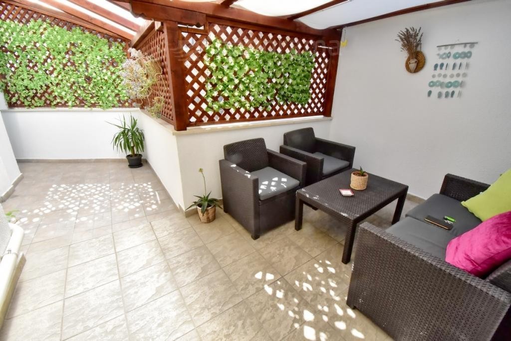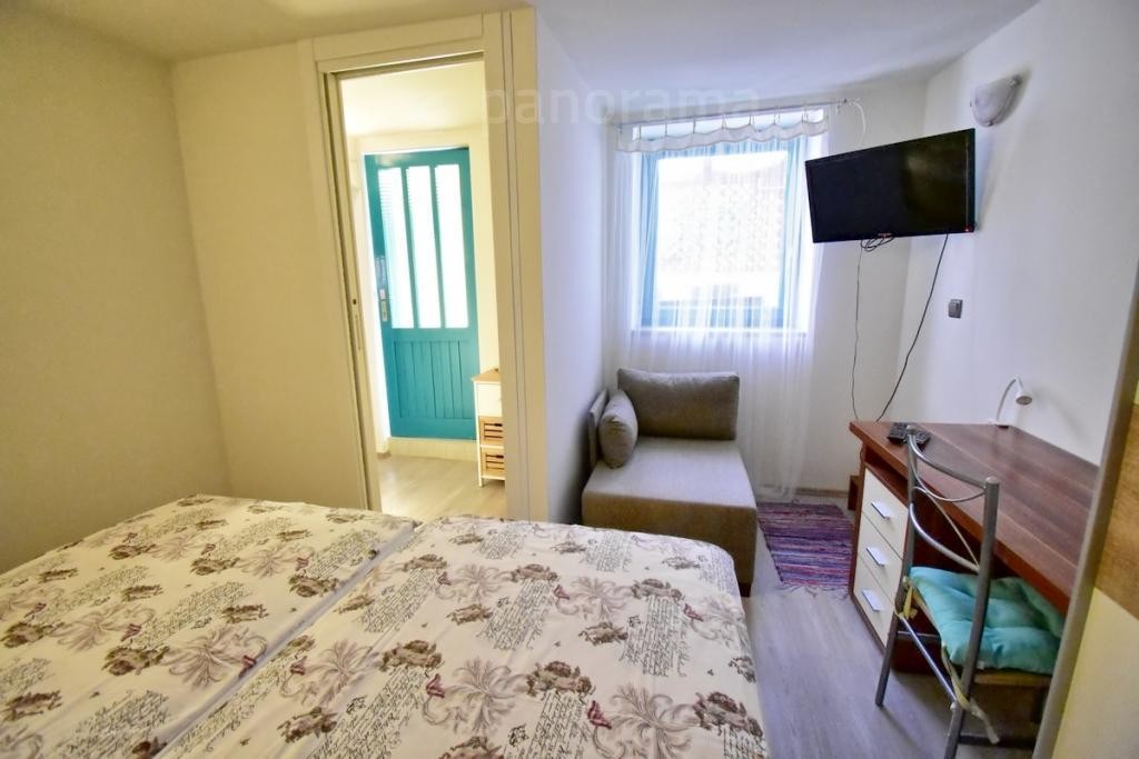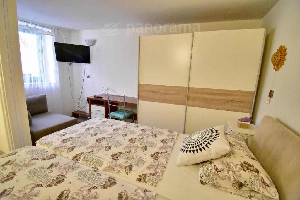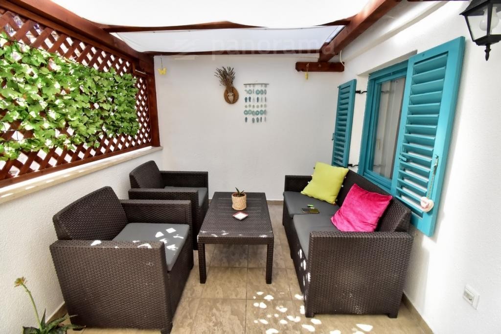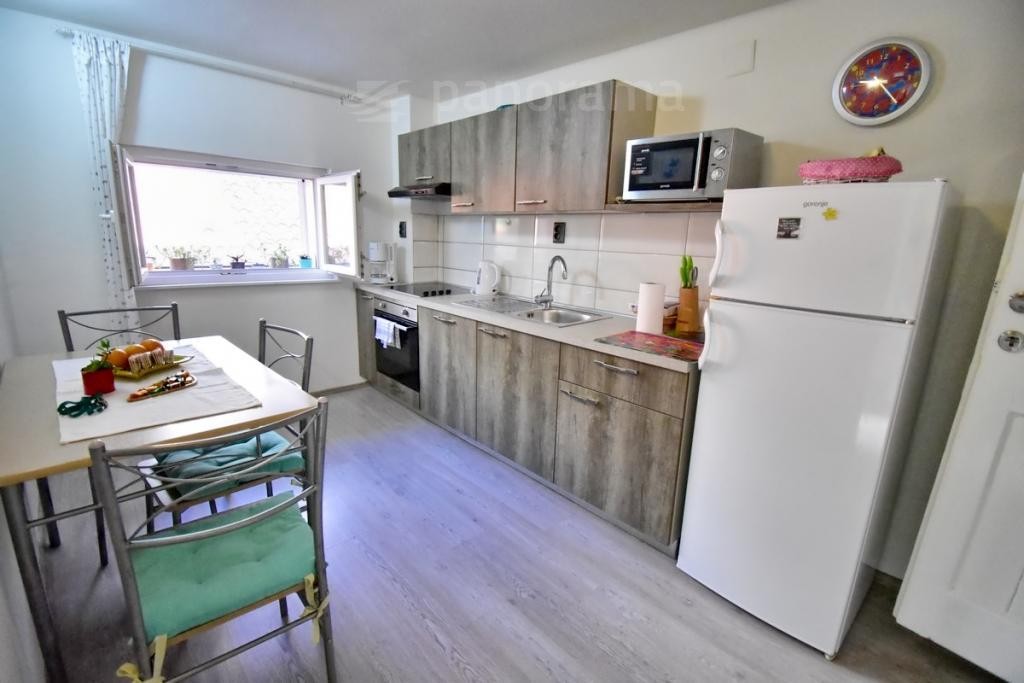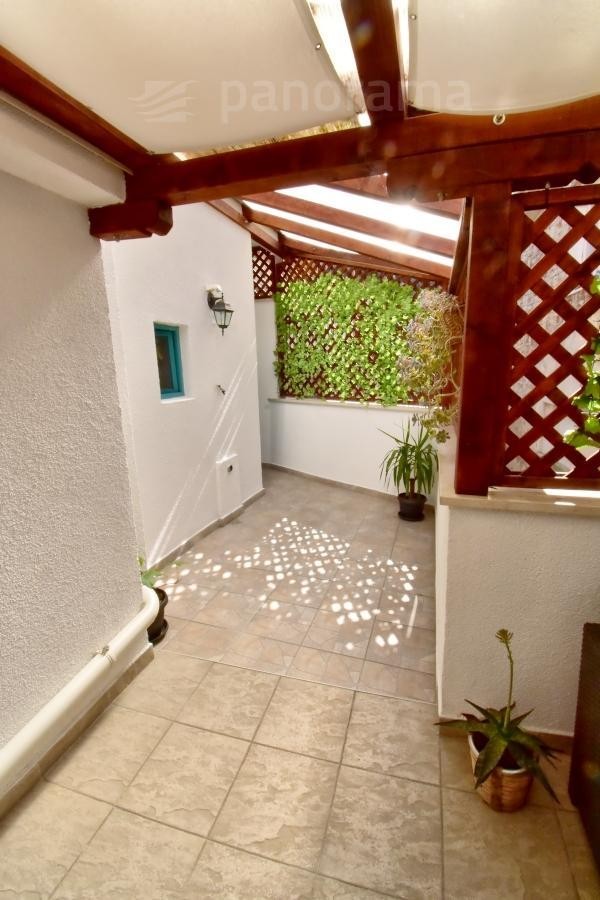Es besteht aus einer Küche mit Esszimmer, einem Schlafzimmer, einem Badezimmer, einer Toilette und einer überdachten Veranda. Es wurde vor einigen Jahren komplett renoviert und zur Vermietung vermittelt. Die Wohnung hat einen separaten Eingang, die Terrasse ist eingezäunt, überdacht und vor Blicken geschützt und ist eine perfekte ruhige Ecke mitten im Zentrum von Pula.