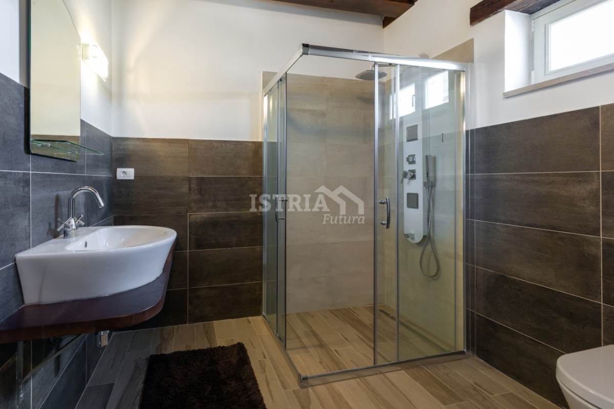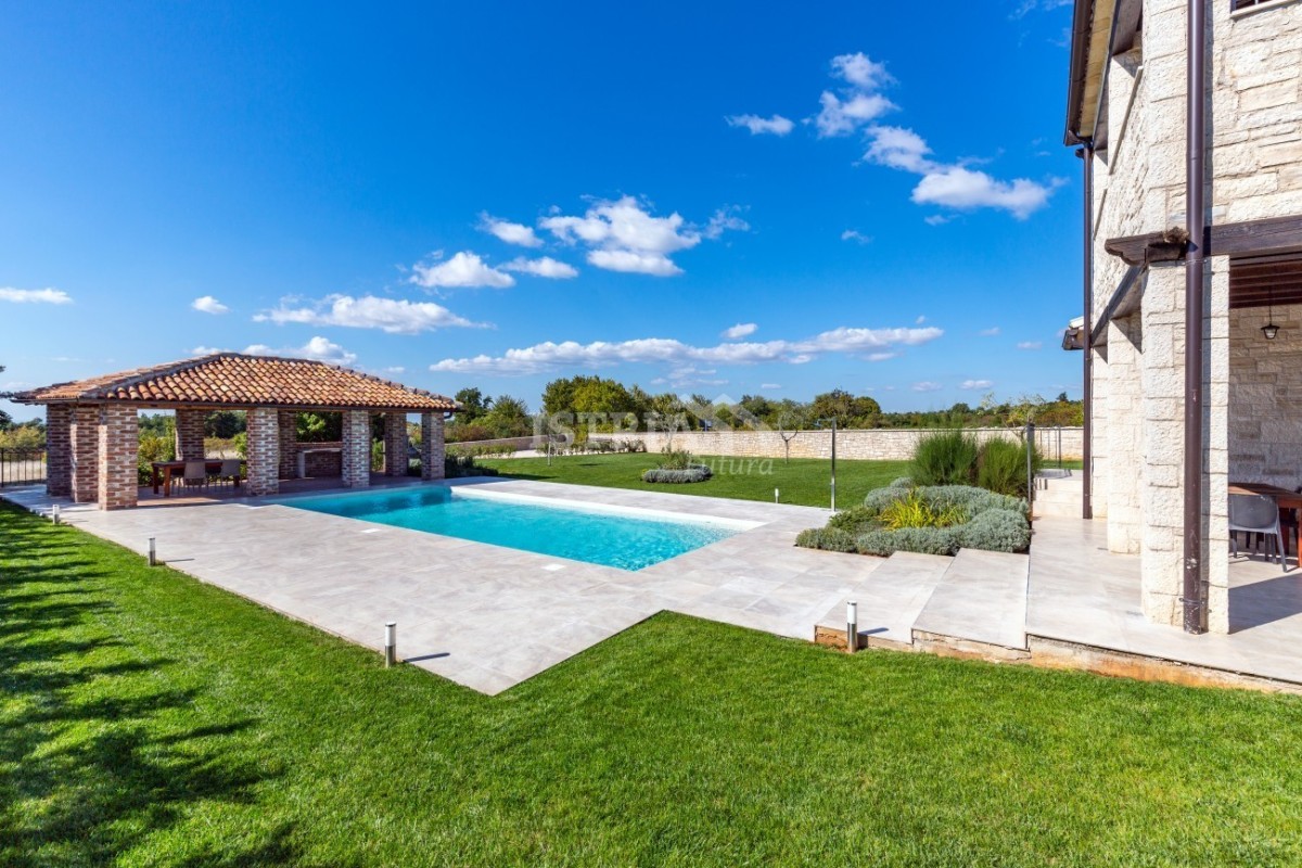 Zum Verkauf steht eine wunderschöne Steinvilla von 250 m2, die im traditionellen istrischen Stil auf einem großen Garten von 1.527 m2 gebaut wurde.