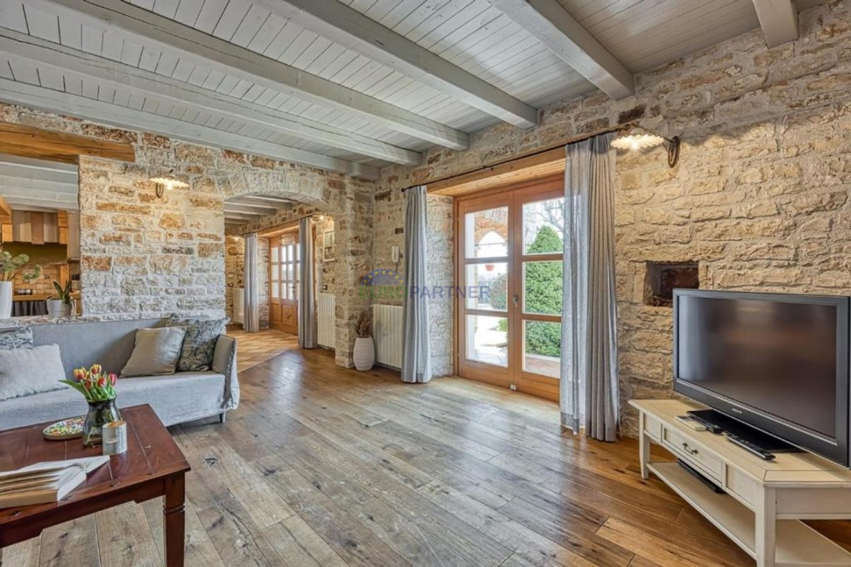 Eine autochthone Steinvilla in der Umgebung eines istrischen Dorfes, die mit ihrem Aussehen den Gesetzen der natürlichen Umwelt voll und ganz folgt und mit ihr zu einem einzigartigen Ganzen verschmilzt.