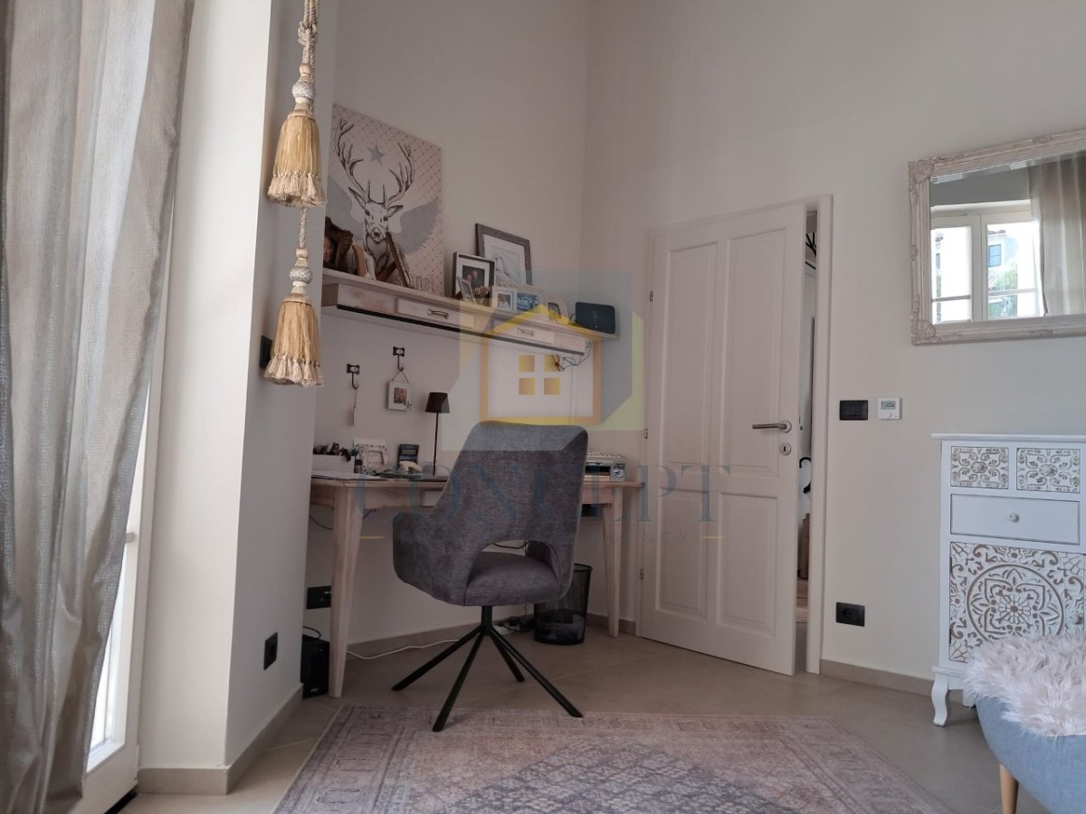 Das Stadtzentrum mit allen Einrichtungen des täglichen Lebens (Schulen, Kindergärten, Post, Restaurants und Cafés) ist fußläufig erreichbar. Rovinj ist etwa 15 Autominuten entfernt, und die Autobahnauffahrt ist nur 10 Minuten entfernt.