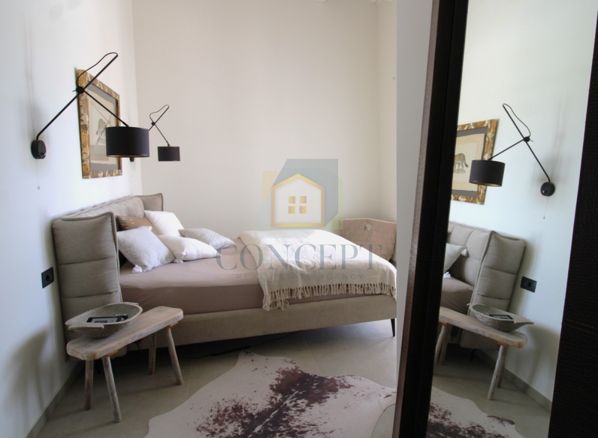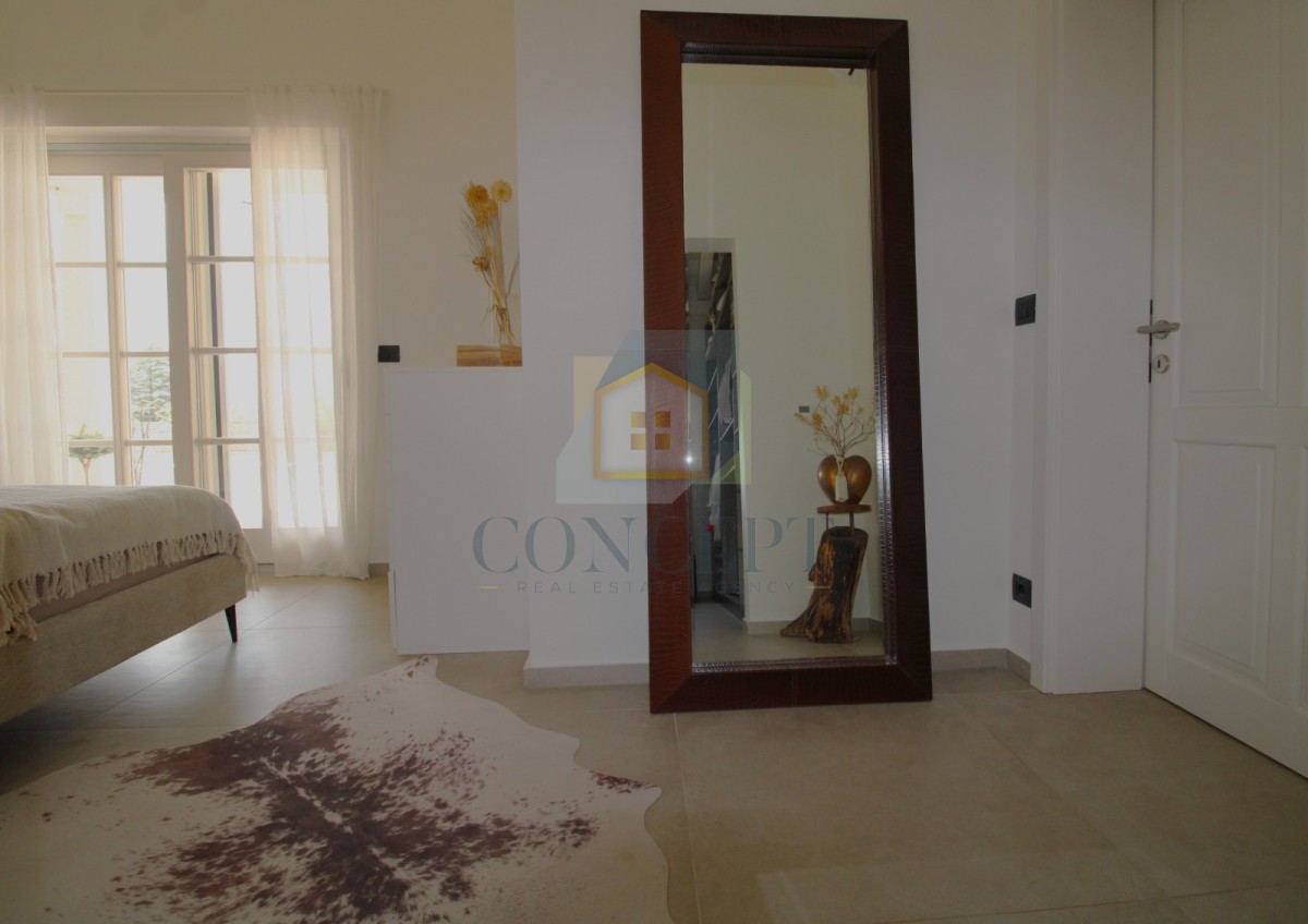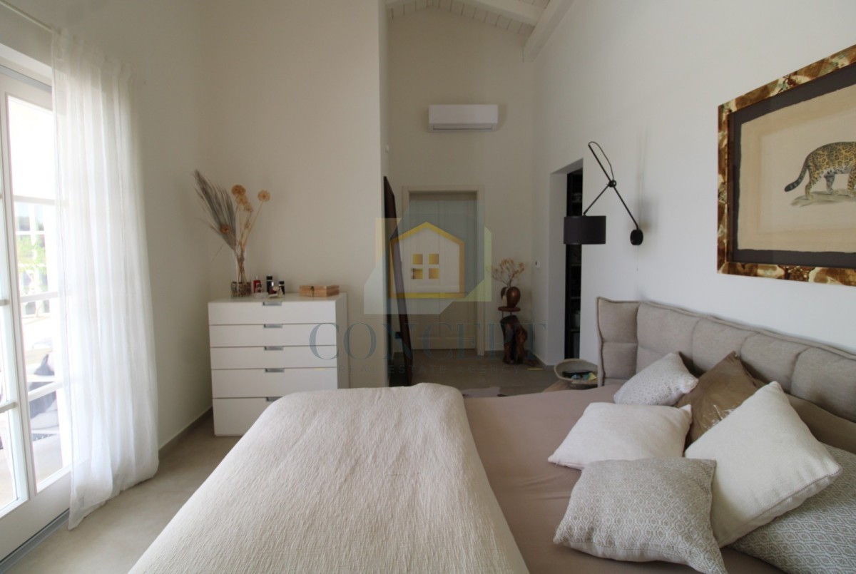 Das Haus verfügt über drei Schlafzimmer, von denen zwei eigene Badezimmer haben. Das Hauptschlafzimmer hat ebenfalls einen begehbaren Kleiderschrank mit Zugang zur Terrasse und zum Pool.