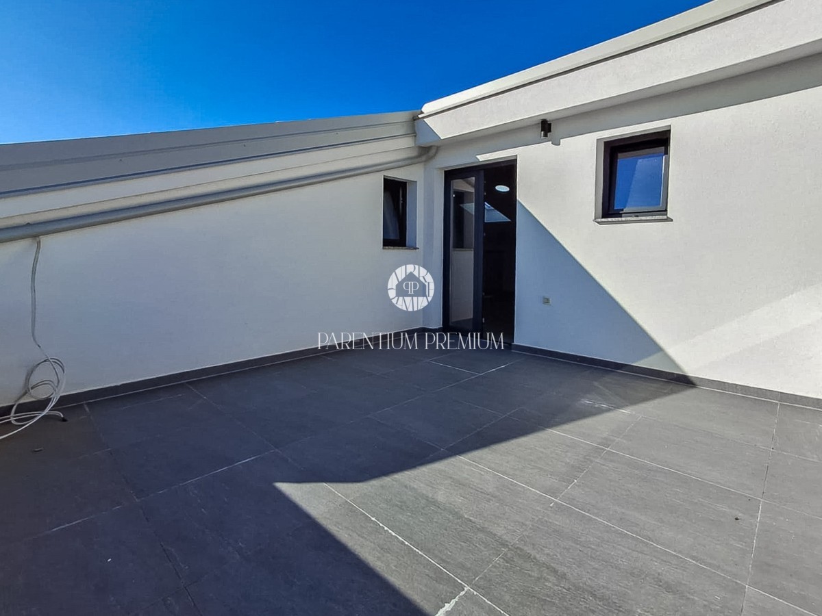 Zum Verkauf steht ein modernes und geräumiges Doppelhaus in einer ruhigen Wohngegend, nur wenige Minuten vom Zentrum von Poreč entfernt, mit einer Gesamtfläche von 174,80 m², verteilt auf drei Etagen.
