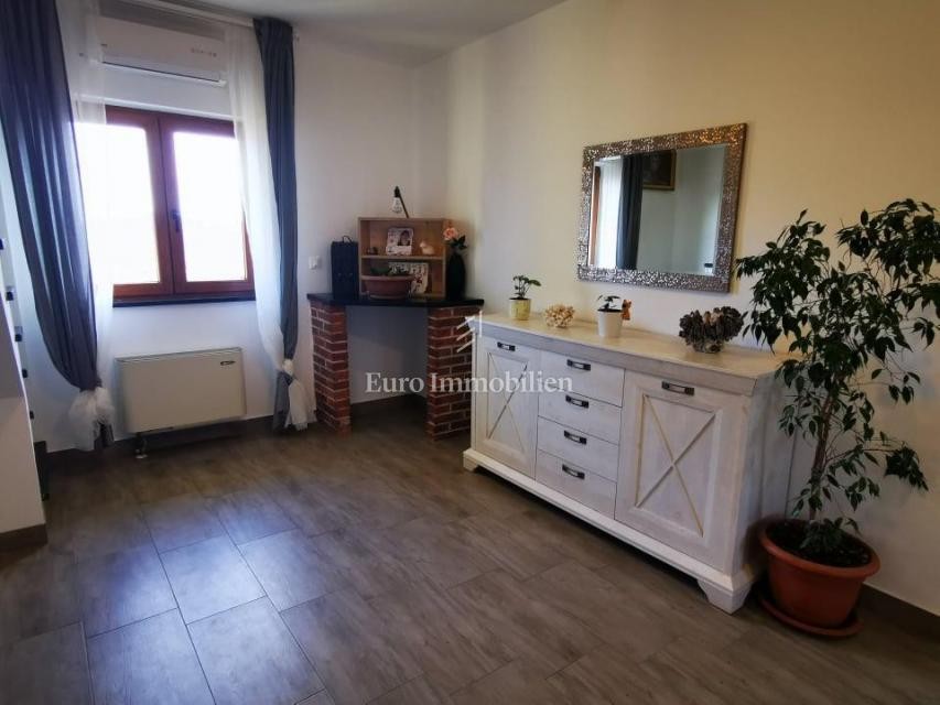 Die gesamte Bruttowohnfläche beträgt 317 m2 und besteht aus drei Etagen: Im Untergeschoss befinden sich eine Taverne (istrischer Kamin) und eine Garage. Das Erdgeschoss verfügt über einen Flur, einen Abstellraum, ein Badezimmer, eine Küche, ein Esszimmer mit Wohnzimmer, zwei Schlafzimmer und eine überdachte Terrasse.