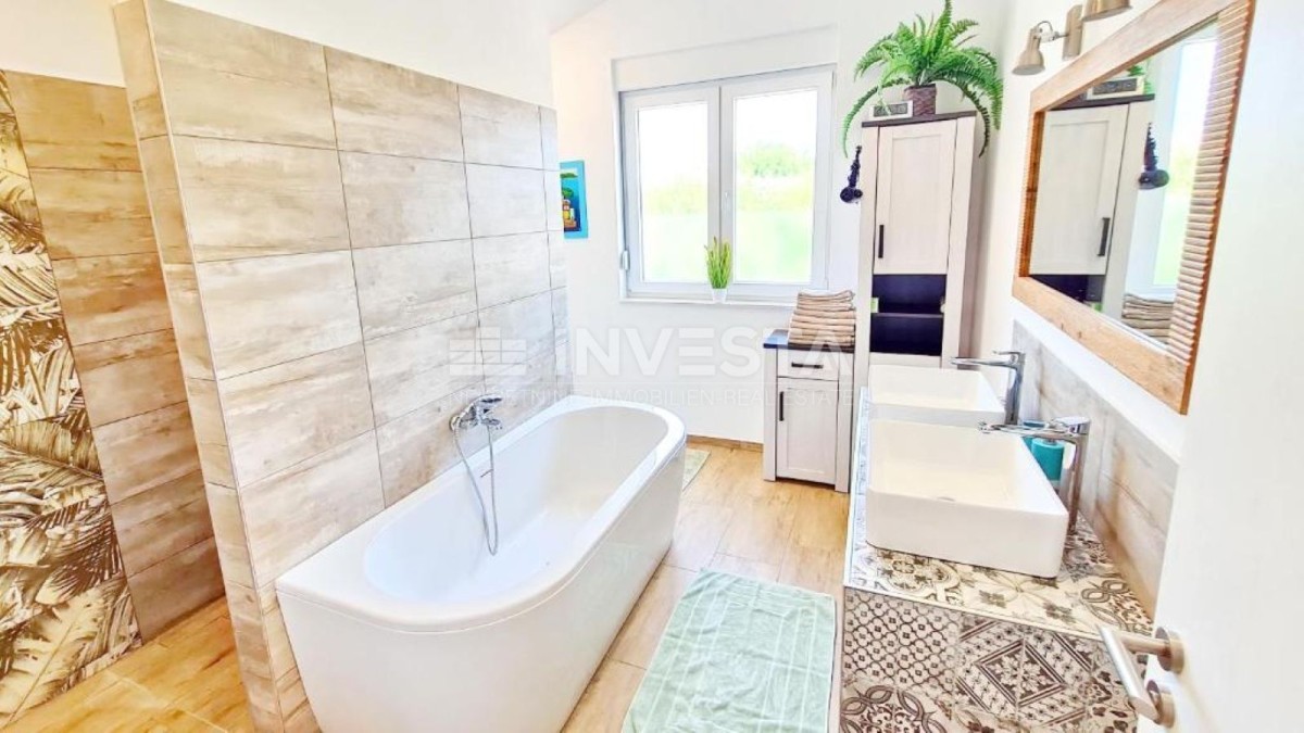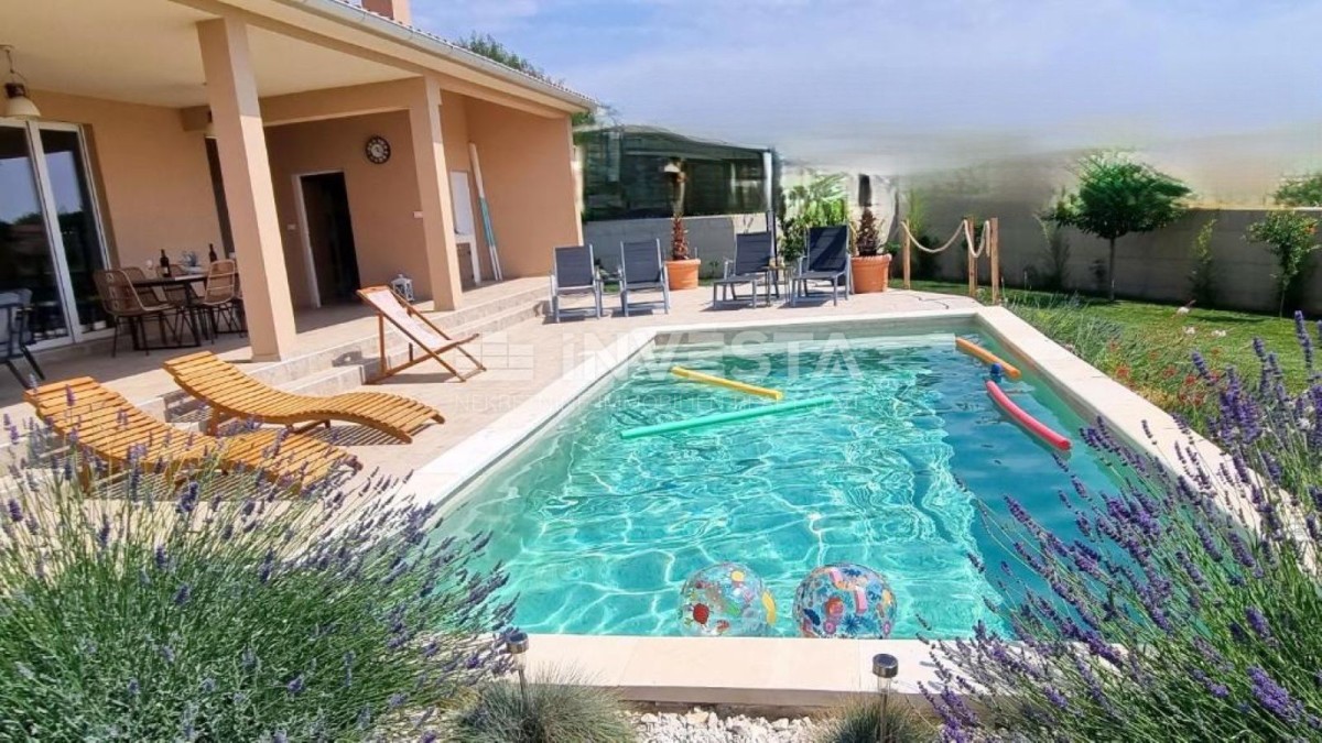 Rund um den 31 m² großen Pool befindet sich ein großzügiges Sonnendeck und ein Ausgang auf eine große Terrasse mit gepflegtem Garten, der eine Außendusche und einen Grill beinhaltet, die mit dem Sonnendeck des Pools für Familien- oder Freundestreffen geteilt wird. Da eine Bohrung für die Bewässerung des Gartens durchgeführt wurde, steht technischem Wasser zur Verfügung, das über das städtische Wasserversorgungssystem zugänglich ist. Der Eigentümer hat die Wahl zwischen zwei Optionen. Der gepflegte Garten des Hauses bietet Platz für das Parken von 2 Autos. Das Haus befindet sich am Ende einer ruhigen Sackgasse, in der nur wenige andere Gebäude zu finden sind. Der Vorteil dieser Immobilie ist die Nähe zu allen wichtigen Dienstleistungen. Sie liegt nur 3,5 km von schönen Stränden entfernt, 10 Minuten mit dem Auto von Fažana und 5 Minuten mit dem Auto vom Stadtzentrum von Pula, was es zu einer ausgezeichneten Wahl für das Familienwohnen oder als Investition für die touristische Vermietung macht.
