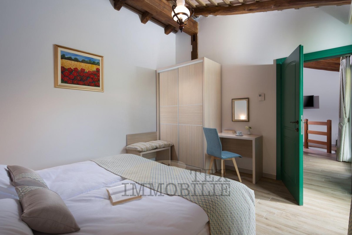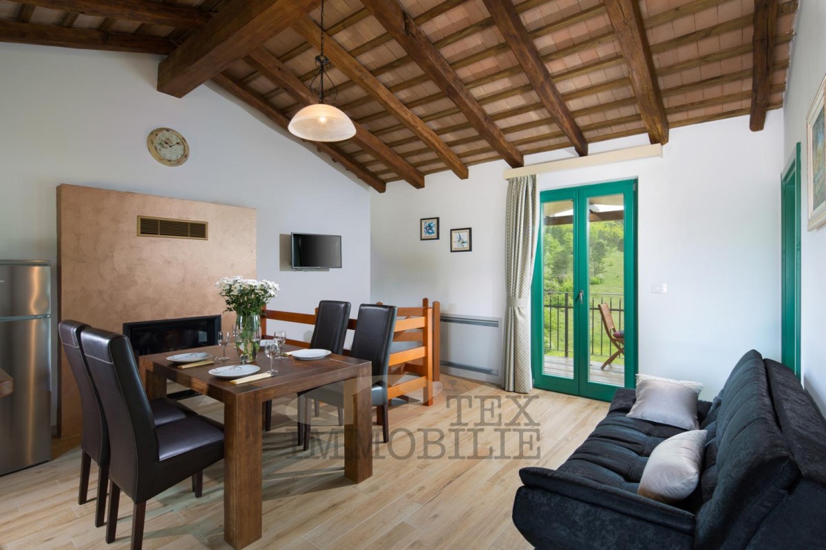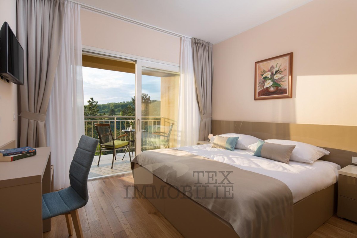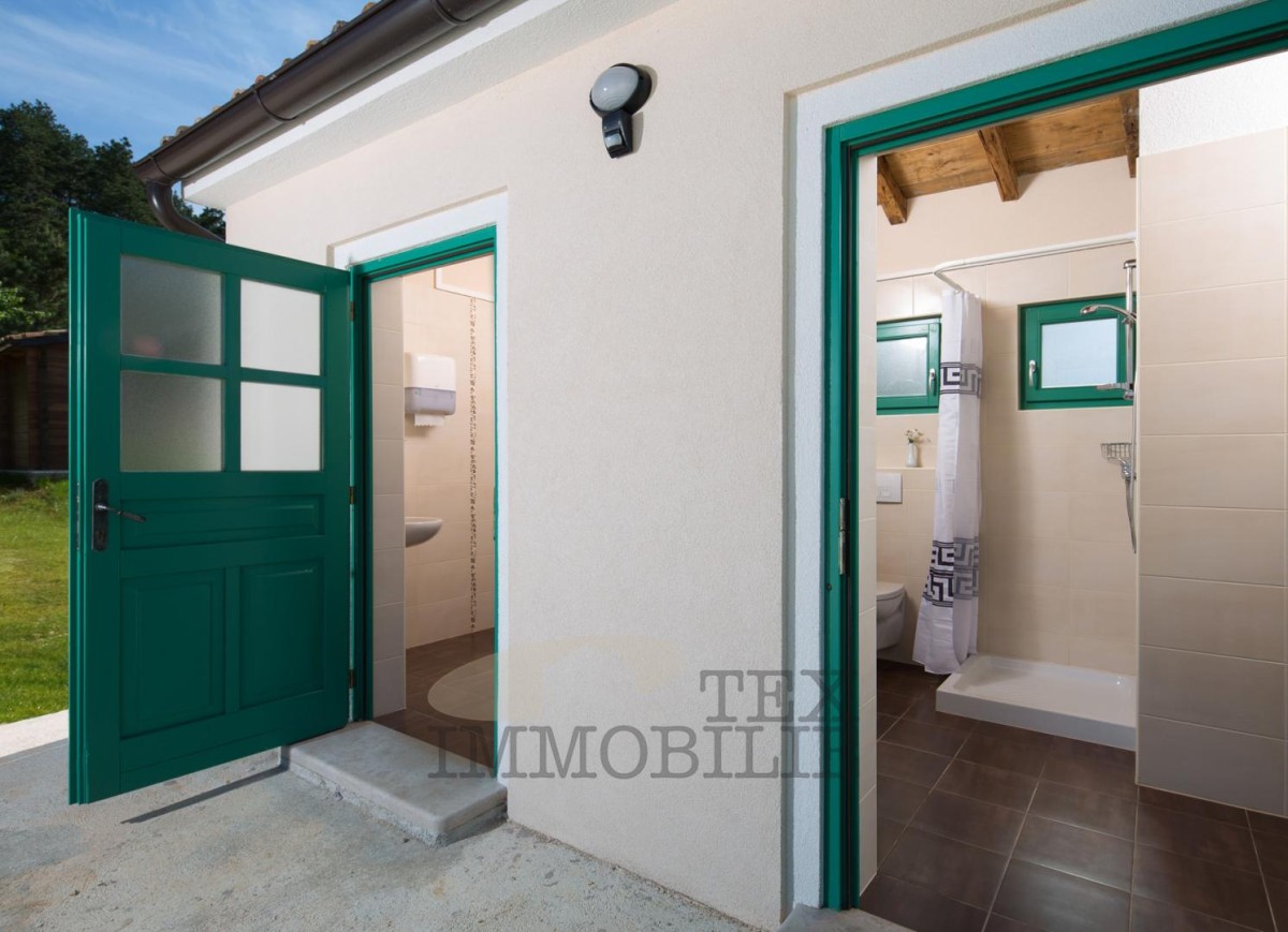An einem abgelegenen Ort, umgeben von Natur und doch nicht weit von den Städten Porec, Rovinj, Novigrad, steht eine 31.026 m2 große Ferienanlage mit Restaurant, zwei Villen und einer Campinganlage zum Verkauf. Das Grundstück ist an die kommunale Infrastruktur und die Hauptstraße angebunden. Die Häuser bestehen aus einem Keller und einem Erdgeschoss. Im Untergeschoss gibt es ein Badezimmer, Schlafzimmer, Flur und Terrasse, und im Erdgeschoss gibt es ein Wohnzimmer, ein Schlafzimmer, ein Badezimmer, eine Eingangsveranda, eine Pergola und eine Toilette.