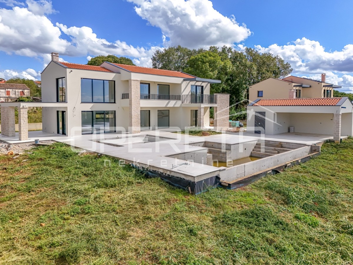 Unweit von St. Lovreč steht eine Villa mit spektakulärem Panoramablick von den Alpen bis zur berühmten Kirche St. Euphemia in Rovinj zum Verkauf. Die Villa befindet sich auf einem Grundstück von 1.400m2 und erstreckt sich über zwei Etagen mit einer Gesamtnettofläche von 254 m2. Sie ist von der unberührten Natur Istriens umgeben und bietet die perfekte Kombination aus Luxus und Privatsphäre.