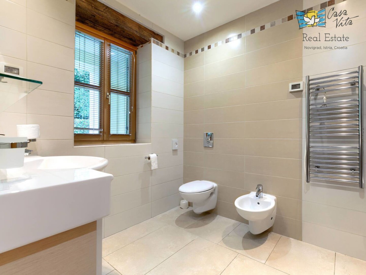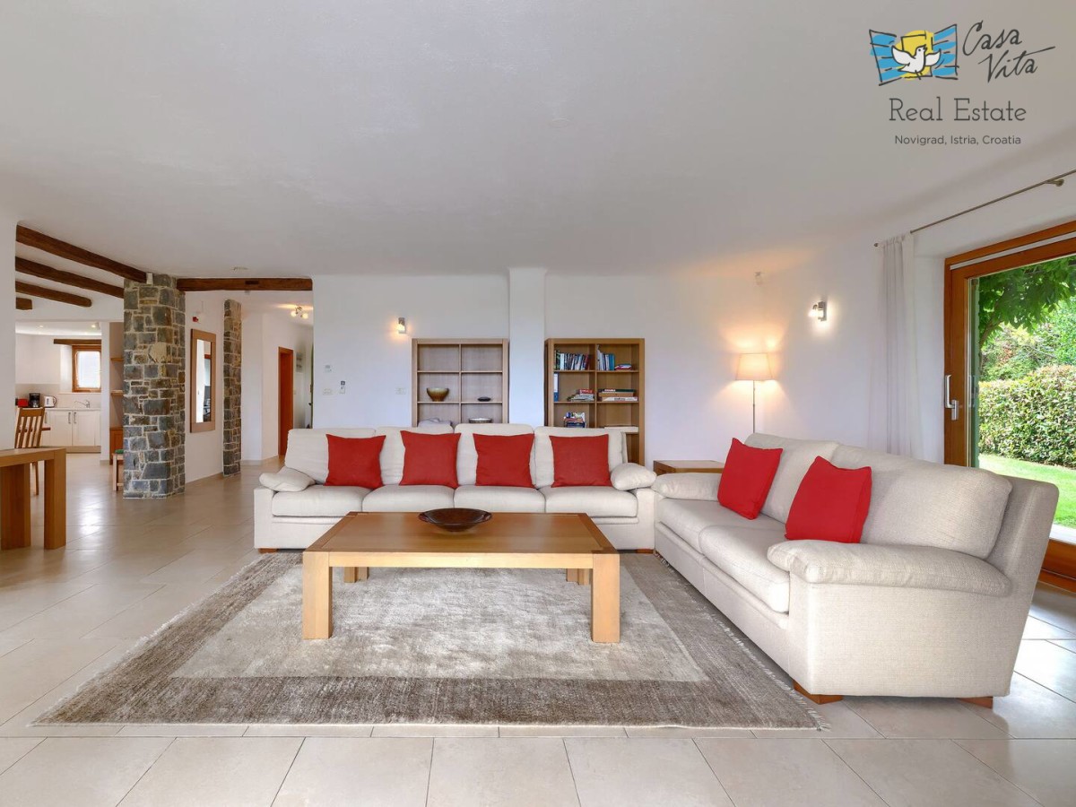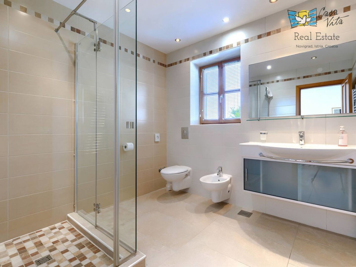 Schönes, luxuriöses freistehendes Haus mit einer Wohnfläche von 250 m2, gelegen in einer ruhigen Gegend der Halbinsel Istrien, in der Nähe der Stadt Buje. Diese geräumige Immobilie wurde im Jahr 2010 erbaut und verfügt über fünf Schlafzimmer, was sie zu einer ausgezeichneten Wahl für größere Familien oder diejenigen macht, die zusätzlichen Platz zum Arbeiten und Entspannen suchen. Das Haus befindet sich auf einem 1270 m2 großen Grundstück, das nach Südwesten ausgerichtet ist und den ganzen Tag über reichlich natürliches Licht ermöglicht.
