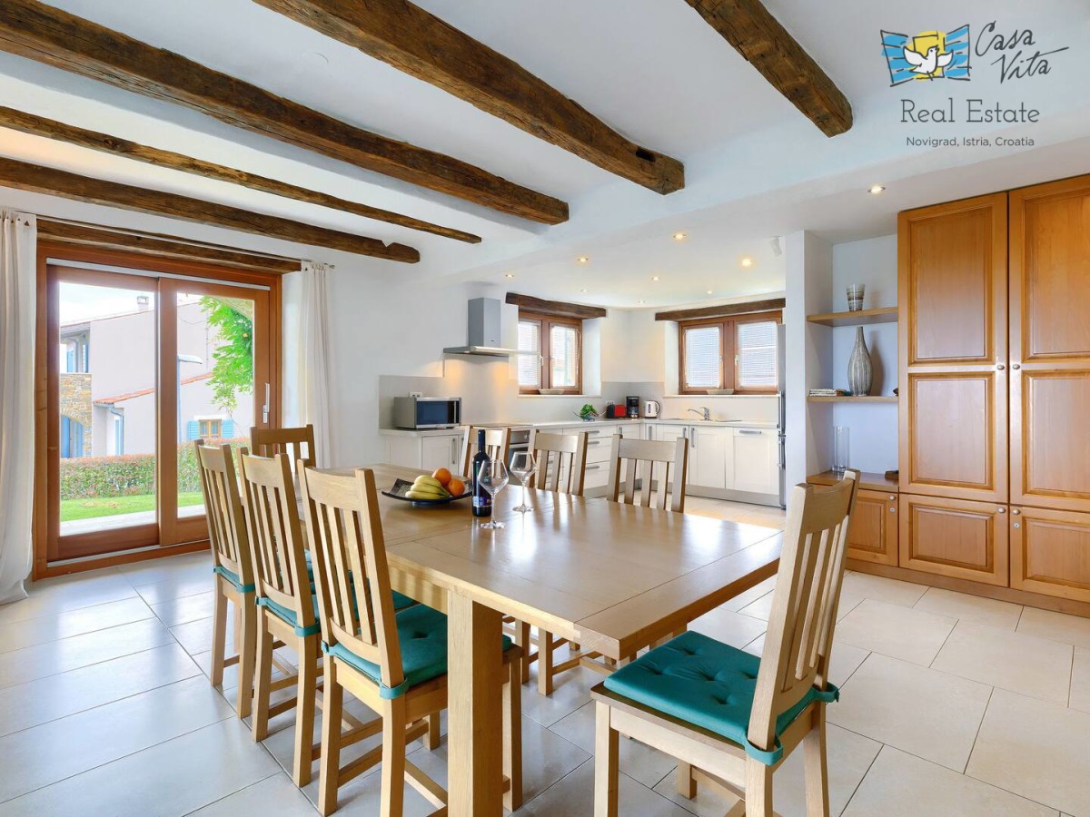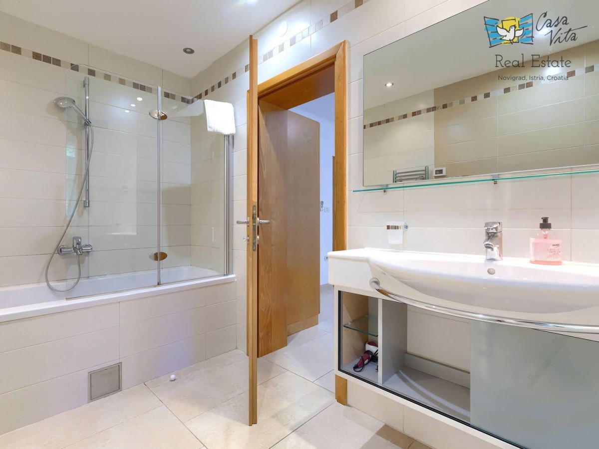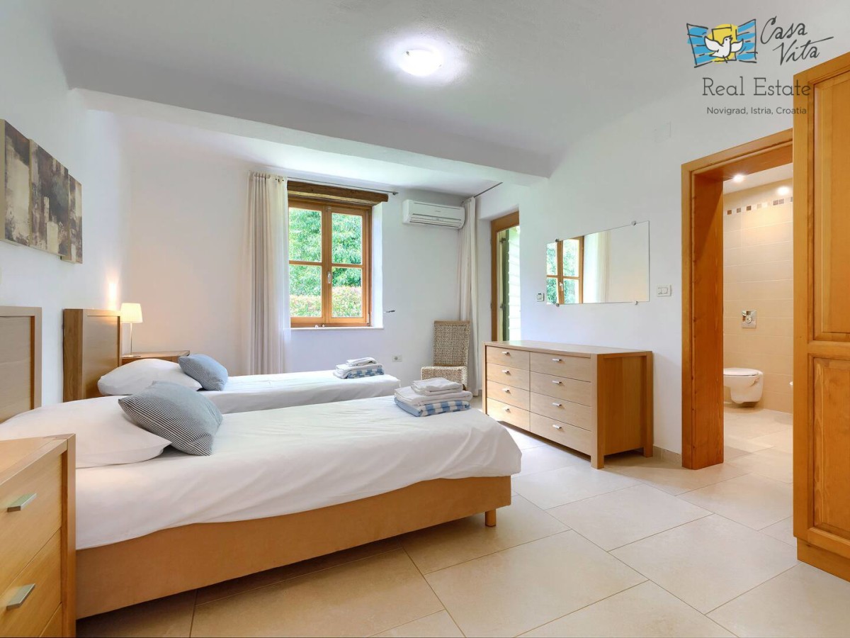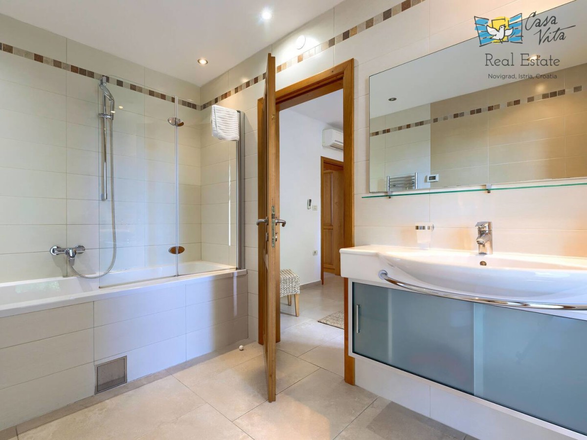 Schönes, luxuriöses freistehendes Haus mit einer Wohnfläche von 250 m2, gelegen in einer ruhigen Gegend der Halbinsel Istrien, in der Nähe der Stadt Buje. Diese geräumige Immobilie wurde im Jahr 2010 erbaut und verfügt über fünf Schlafzimmer, was sie zu einer ausgezeichneten Wahl für größere Familien oder diejenigen macht, die zusätzlichen Platz zum Arbeiten und Entspannen suchen. Das Haus befindet sich auf einem 1270 m2 großen Grundstück, das nach Südwesten ausgerichtet ist und den ganzen Tag über reichlich natürliches Licht ermöglicht.