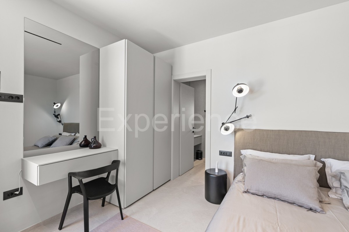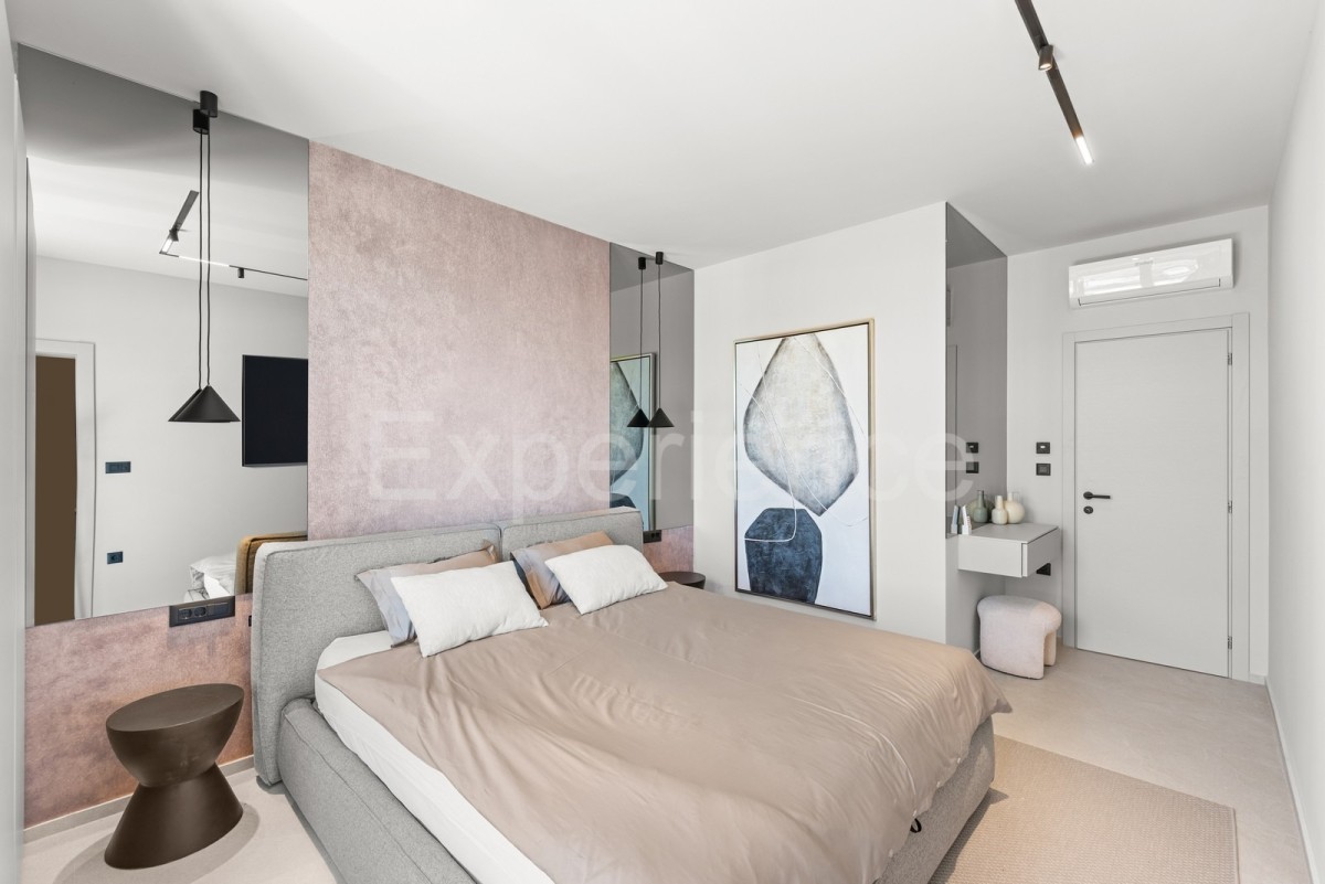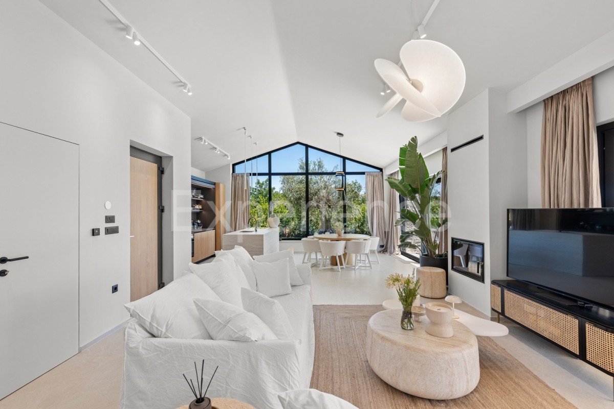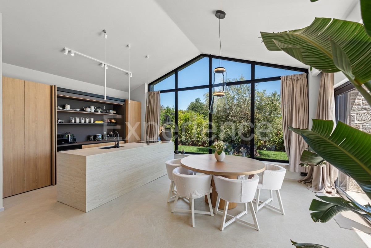 Eine moderne, ebenerdige Designervilla steht zum Verkauf, die traditionellen istrischen Stein perfekt mit einem eleganten, zeitgenössischen Stil verbindet. Die Villa befindet sich in einer ruhigen Gegend, nur wenige Autominuten vom Zentrum von Poreč und dem Meer entfernt und ist somit ideal für ein ruhiges Leben mit allen Annehmlichkeiten in unmittelbarer Nähe. Interieur und Exterieur: • Wohnfläche: 137 m², • Großzügiger, beheizter Swimmingpool: 44 m², • Landschaftsgarten: 500 m², • Parkplätze mit Lademöglichkeit für Elektrofahrzeuge. Die Villa strahlt dank hoher Decken und großer Glasfronten Großzügigkeit und Licht aus und bietet einen wunderschönen Blick auf die gepflegte Umgebung und den Pool – für ein einzigartiges mediterranes Ambiente. Raumaufteilung: • Offener Wohnbereich mit Küche, Esszimmer und Wohnzimmer mit Kamin, • Drei Schlafzimmer, jeweils mit eigenem Badezimmer, • Technikraum/Waschraum. Design und AusstattungDie Villa ist vollständig designerisch eingerichtet mit sorgfältig ausgewählten hochwertigen Möbeln und Geräten: • Elegantes Caruso-Sofa, Gervasoni-Sideboard, • Copat Life Küche mit Bora Bora Dunstabzugshaube und hochwertigen Miele-Geräten, • Smeg Kleingeräte, • Copat Life Esstisch und Flos Designerleuchten. Komfort und Technologie: • Fußbodenheizung über Wärmepumpe, • Inverter-Klimaanlagen zum Heizen und Kühlen, • Beheizter Swimmingpool und Sommerküche mit Grill und Kave Home Gartenmöbeln, • Videoüberwachung. Diese Villa ist eine ideale Gelegenheit für alle, die ein modernes und luxuriöses Zuhause in ruhiger Lage, nahe dem Meer und allen Einrichtungen suchen. Sie wird komplett möbliert und ausgestattet verkauft und ist sofort bezugsfertig oder kann als luxuriöse Ferienimmobilie vermietet werden.