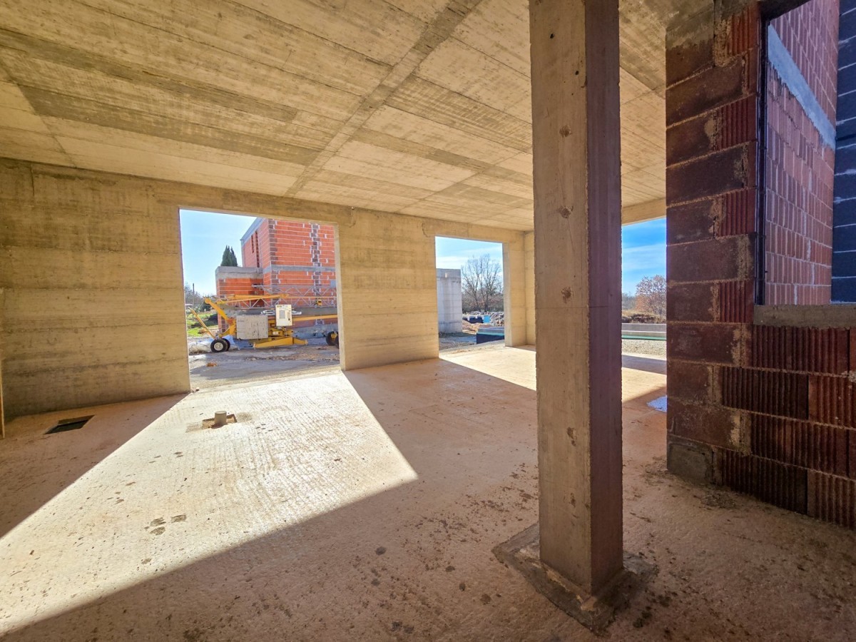 POREČ- Ca. 10 Autominuten vom Meer und dem Zentrum von Poreč entfernt - eine im Bau befindliche Villa mit modernem Design auf einem Grundstück von 1080 m2. Im umzäunten Garten wird die Villa über einen Swimmingpool von 36,30 m2 und eine Sommerküche von 23,88 m2 verfügen. die mit einem Außenlagerraum von 4,91m2 verbunden ist. Diese moderne Villa bietet eine Nettowohnfläche von 179,61 m2 und ist auf zwei Etagen verteilt: Erdgeschoss und erste Etage. Der Haupteingang befindet sich an der Nordfassade, wo ein überdachter Durchgang zum Flur führt, der das Schlafzimmer mit dem dazugehörigen Badezimmer und der Gästetoilette verbindet und zum offenen Raum bestehend aus Küche, Esszimmer und geräumigem Wohnzimmer führt. Vom Esszimmer/Wohnzimmer aus gelangt man auf eine teilweise überdachte Terrasse. Eine Innentreppe führt zu den Zimmern im ersten Stock, drei Schlafzimmern mit angeschlossenen Badezimmern, und von jedem Zimmer aus gelangt man auf einen Balkon, der einen Blick auf die Umgebung bietet.