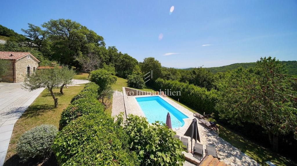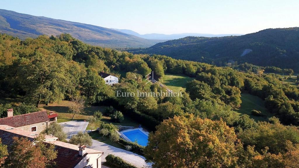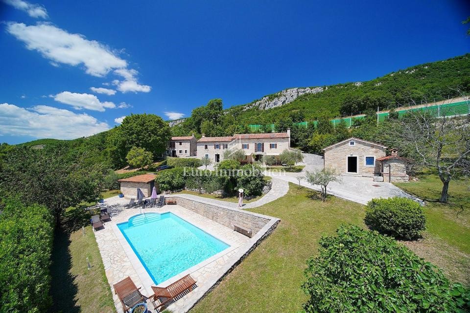 Zum Verkauf steht ein renoviertes Anwesen mit vier Steinhäusern auf einem Grundstück von 13.000 m2, an den Hängen von Ćićarija, in der Nähe von Lupoglav. Sie haben einen Panoramablick auf die sie umgebende Natur. Die Steinhäuser mit einer Gesamtfläche von 364 m2 wurden ursprünglich zu Beginn des 20. Jahrhunderts erbaut und im Jahr 2000 gründlich renoviert. Drei Häuser mit einer Fläche von 136 m2, 86 m2 und 85 m2 verfügen jeweils über zwei Schlafzimmer und das vierte Das Haus mit einer Fläche von 57 m2 ist als großer Raum für gesellige Zusammenkünfte konzipiert. In allen Häusern ist eine elektrische Fußbodenheizung installiert, und im Erdgeschoss jedes Hauses ist außerdem ein Steinkamin mit Ventilator-konvektoren installiert. Sie sind komplett ausgestattet und können gemietet werden. Im großen Garten gibt es einen Kinderspielplatz mit Schaukeln und einem Mini-Fußballfeld, einen Swimmingpool und eine gepflasterte Liegewiese.