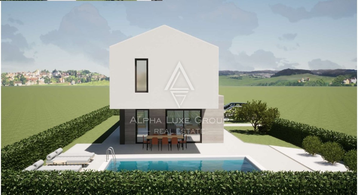 In der ruhigen istrischen Landschaft, nur 15 km entfernt von der lebendigen Stadt Poreč, entsteht eine zeitgenössische Villa, die den Inbegriff modernen Wohnens in einer idyllischen Umgebung bietet. Die Architektur dieser Villa harmoniert perfekt mit ihrer Umgebung und verfügt im Erdgeschoss über einen offenen Grundriss, der den Wohnbereich nahtlos mit der Küche und dem Essbereich verbindet, neben einem Schlafzimmer mit eigenem Bad, einem WC und einem Hauswirtschaftsraum. Das Design umfasst großflächige Glaswände in den Wohn- und Essbereichen, die für reichlich natürliches Licht und ein Gefühl der Offenheit sorgen. Eine elegante Treppe führt in das erste Stockwerk zu drei luxuriösen Schlafzimmern, jedes mit einem eigenen, modernen Badezimmer und Terrassen, die einen Blick auf die grüne Umgebung und den Pool bieten.