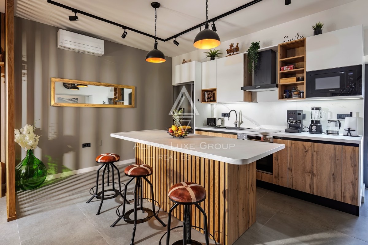 Die Innenausstattung mit luxuriösen Natuzzi-Möbeln sorgt für höchsten Komfort und Stil. Der gepflegte Garten von 2.459 m² verfügt über einen beheizten Pool (50 m²), eine Sommerküche, eine überdachte Terrasse, einen Kinderspielplatz mit Schaukeln und ein Trampolin – ein mediterraner Rückzugsort in vollkommener Privatsphäre.