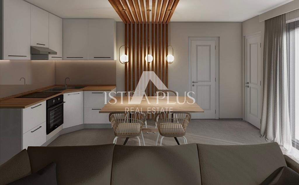 In attraktiver Lage in einem ruhigen istrischen Küstenort zwischen Poreč und Vrsar steht eine moderne Wohnung in einem Neubau zum Verkauf.