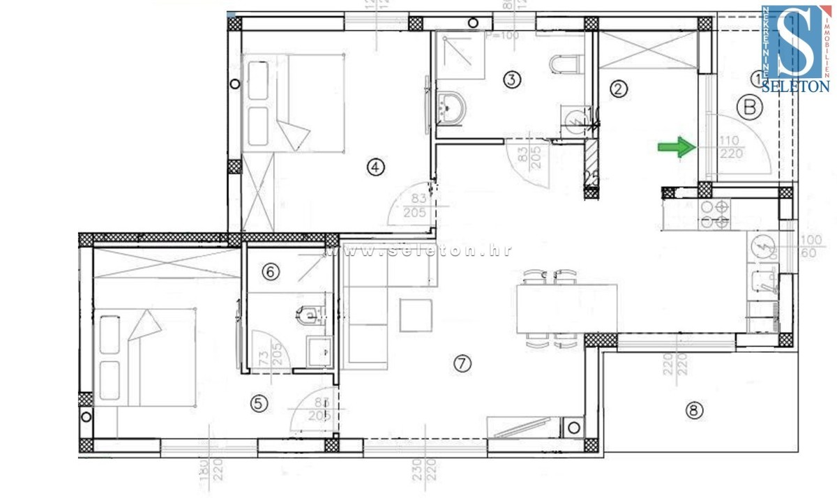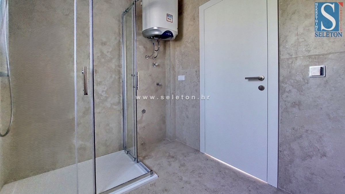Zum Verkauf steht eine nueu Wohnung in der Nähe von Poreč mit einer Fläche von 76,27 m², bestehend aus Wohnzimmer, Esszimmer, Küche, Flur, überdachter Terrasse, 2 Schlafzimmern und 2 Bädern. Die Wohnung befindet sich im Erdgeschoss des Gebäudes mit Aufzug, verfügt über einen separaten Eingang, 2 Parkplätze, Fußbodenheizung in der gesamten Wohnung, Fenster mit drei IZO-Gläsern, Moskitonetze an den Fenstern, vorbereitung für Klimaanlage und einem privaten Garten von ca. 70 m². Die Wohnung liegt ca. 3 km vom Meer und 9 km vom Zentrum von Poreč entfernt, im Ort gibt es Restaurants, Cafés, eine Apotheke und Supermarkt.