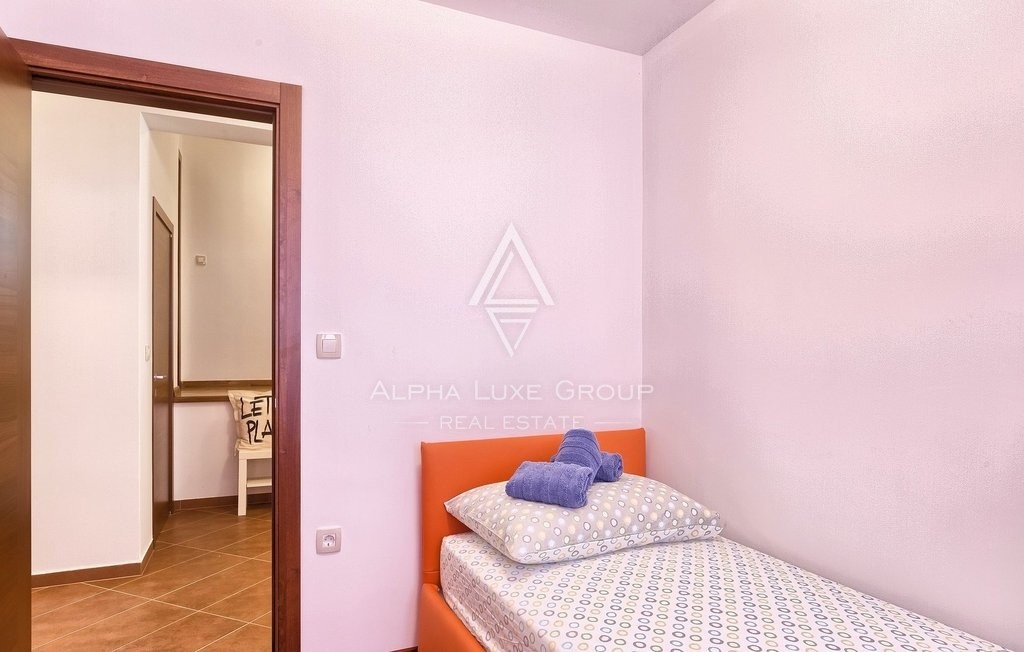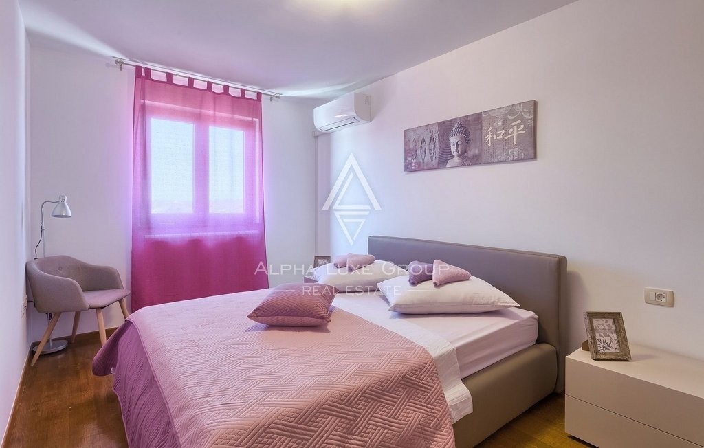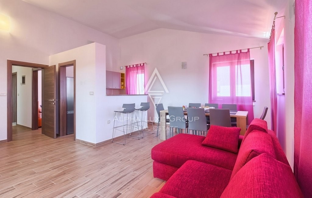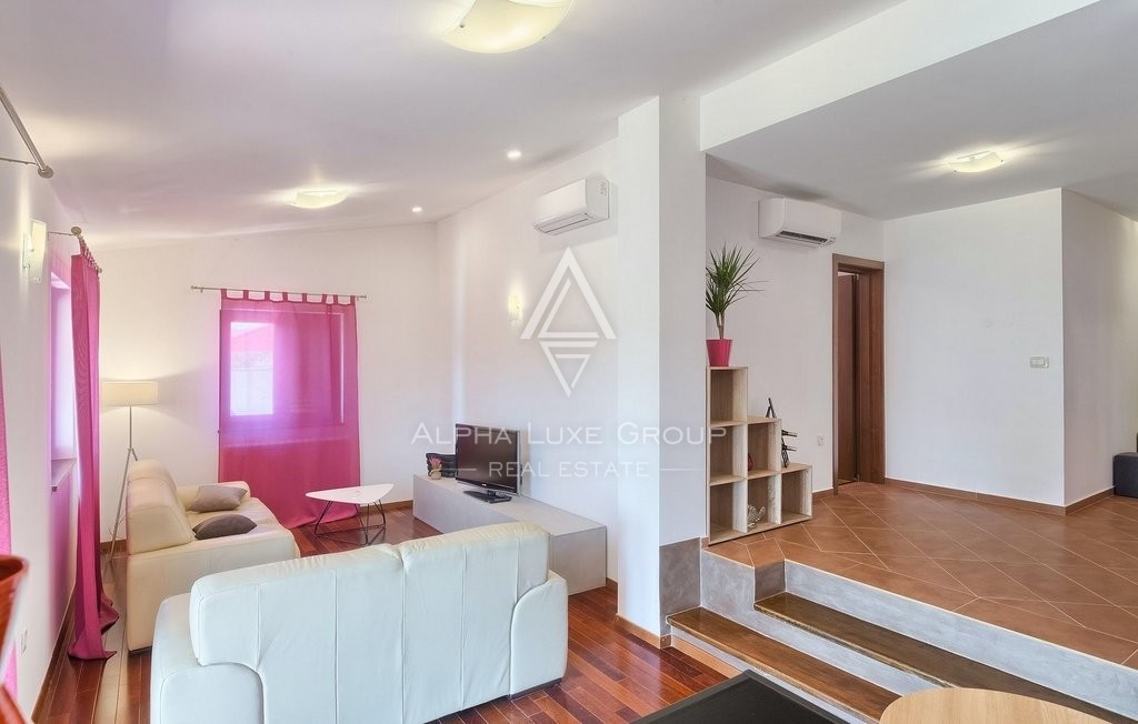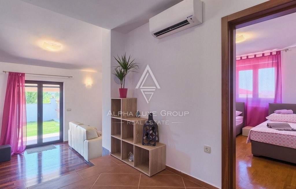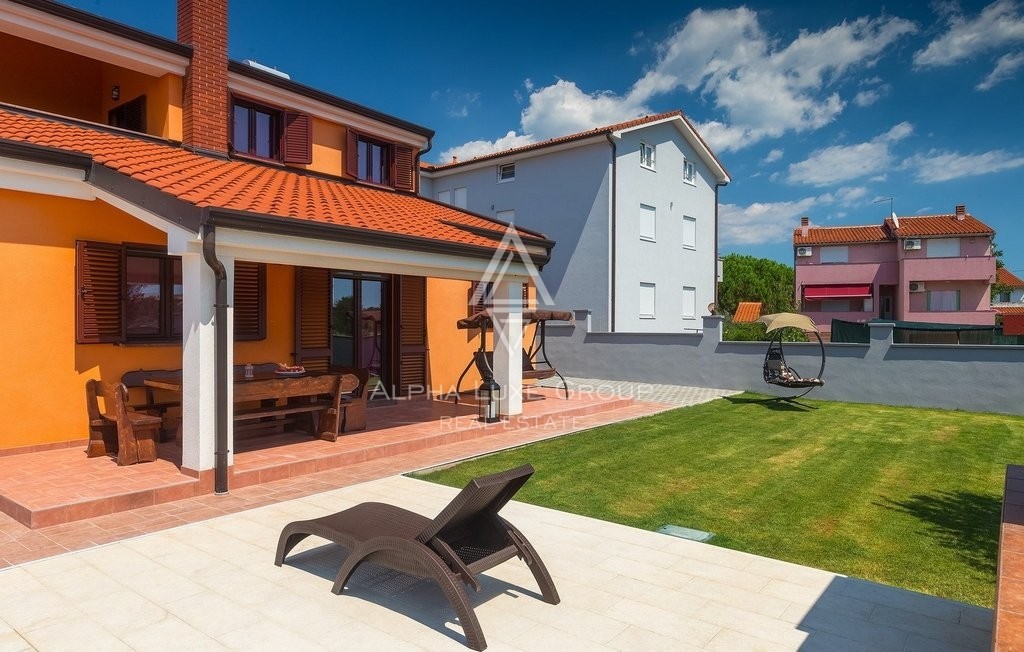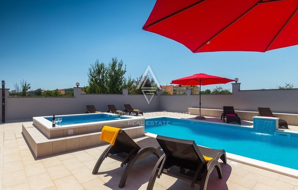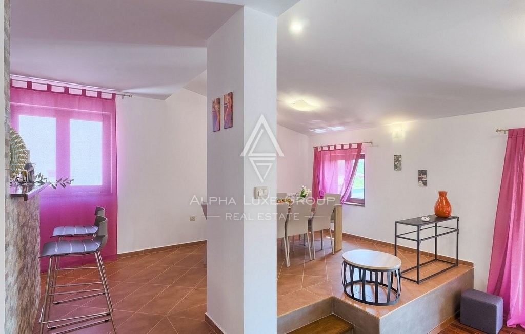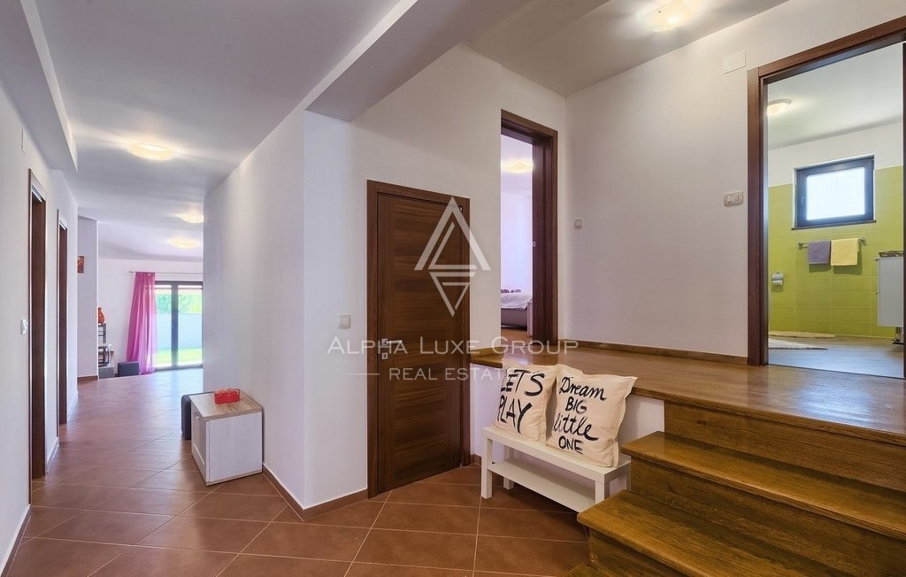 Diese beeindruckende Villa, ideal gelegen zwischen Pula und Medulin, bietet eine einzigartige Kombination aus modernem Luxus und großzügigem Raumangebot. Auf einem weitläufigen Grundstück erbaut, umfasst die Villa zwei separate Apartments und ist perfekt geeignet für größere Familien oder als Renditeobjekt für Ferienvermietungen. Im Erdgeschoss finden Sie ein helles Wohnzimmer, einen Essbereich, eine Küche mit direktem Zugang zur überdachten Terrasse sowie vier komfortable Schlafzimmer. Das Obergeschoss verfügt über drei weitere Schlafzimmer, ein zweites Wohnzimmer, einen Essbereich und eine Küche.