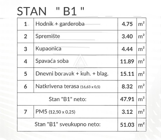 Das Projekt besteht aus vier modernen Wohngebäuden mit insgesamt 58 Einheiten. Drei Gebäude umfassen jeweils 15 Wohnungen, während das vierte Gebäude 13 Einheiten bietet. Das architektonische Konzept basiert auf klaren und modernen Linien, mit Erdgeschosswohnungen mit privaten Gartenflächen und Wohnungen in den oberen Etagen mit großzügigen Terrassen. Die Raumaufteilung umfasst ein Schlafzimmer, ein helles Wohnzimmer mit Küche und Essbereich, ein vollständig ausgestattetes Badezimmer sowie funktionale Außenflächen für den täglichen Komfort.