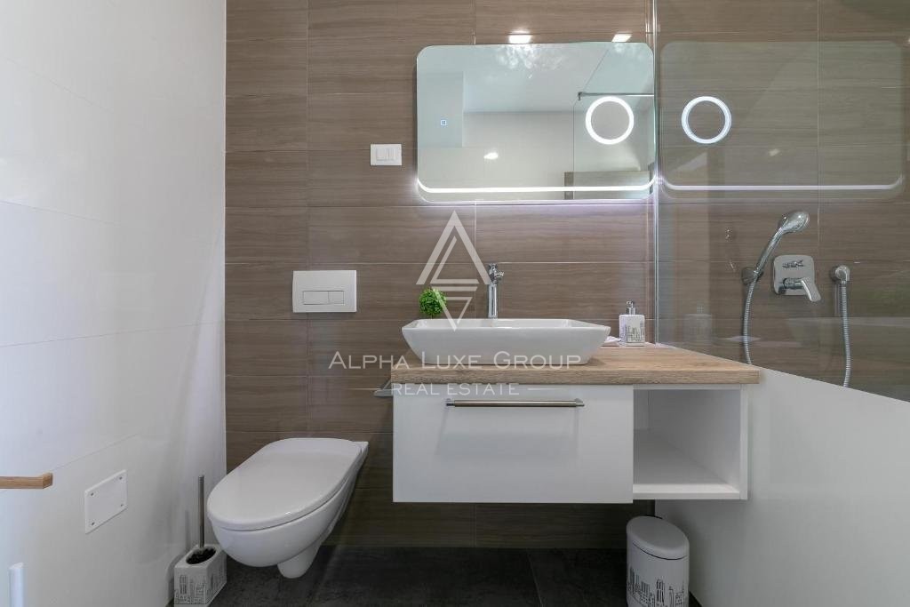Mit Energieeffizienz im Fokus wurde dieses Niedrigenergiehaus mit modernster Technologie und Isolierung erbaut, um den Energieverbrauch auf ein Minimum zu reduzieren. Vom thermischen Isolieren der Fassade, des Dachs und der Böden bis hin zu maßgefertigten Tischlerarbeiten wurde alles auf höchste Energieeffizienz ausgelegt. Das Innere, dekoriert in erdigen Tönen mit eleganten Akzenten in Weiß und Grau, ist mit modernsten Geräten ausgestattet und verfügt über maßgefertigte Möbel aus echter slawonischer Eiche, was Luxus und Ökofreundlichkeit vereint.