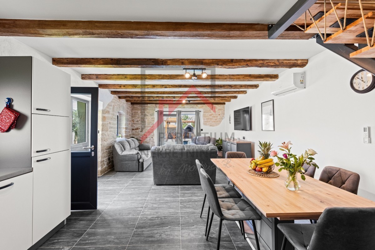 Zum Verkauf steht dieses wunderschöne Steinhaus, das komplett restauriert und renoviert wurde und bezugsfertig ist. Das Haus befindet sich in der weiteren Umgebung der Stadt Poreč, in einem kleinen istrischen Dorf. Dieses Haus hat zwei Stockwerke und besteht aus einem Erdgeschoss und einem ersten Stock.