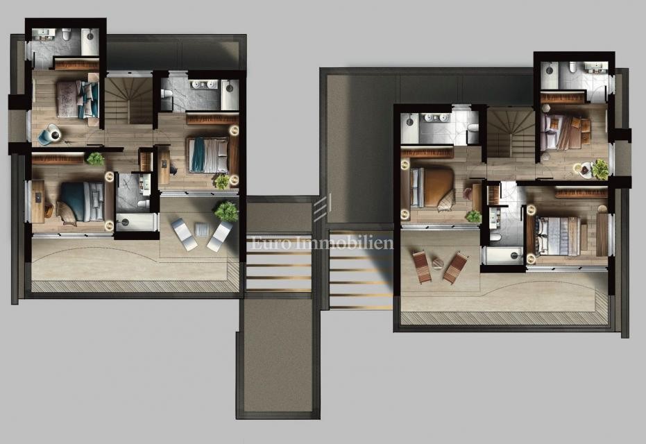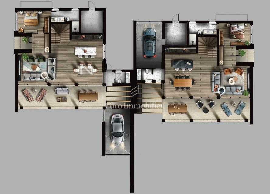 Installationen für einen Telefonanschluss und Anschluss für Fernsehen über Kabel- und Satellitenfernsehen sind ebenfalls vorhanden. Bei der Planung des Projekts wurde besonderes Augenmerk auf die Gestaltung der Villa und die Aufteilung der Räume nach höchsten Ansprüchen modernen Wohnens gelegt. Die Raumhöhe im Erdgeschoss und im 1. OG beträgt 2,60 m. Die Ausstattung der gesamten Anlage erfolgt nach modernsten technischen Standards. Die Villa wird mit einem Smart-Home-Managementsystem ausgestattet. Besonderer Wert wird auf eine hervorragende Schall- und Wärmedämmung gemäß einschlägiger Normen sowie auf die Verwendung hochwertiger Baumaterialien gelegt. Dieses Projekt ist ideal für einen Kunden, der einen zuverlässigen Partner für den Bau seines schlüsselfertigen Hauses sucht.