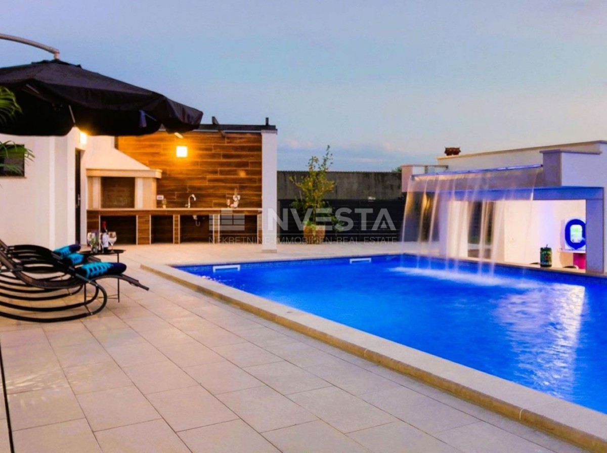 Zum Verkauf steht eine luxuriöse Villa mit Pool, die im ruhigen Dorf Loborika, in der Nähe von Pula, gelegen ist.