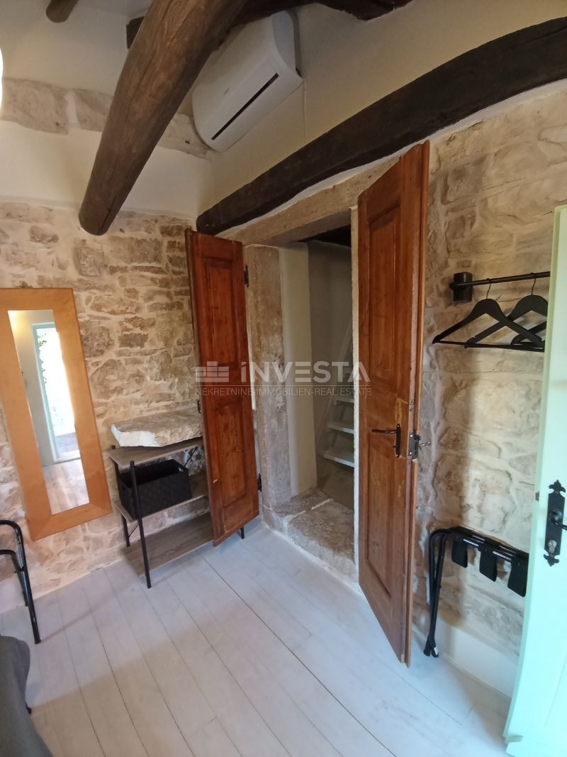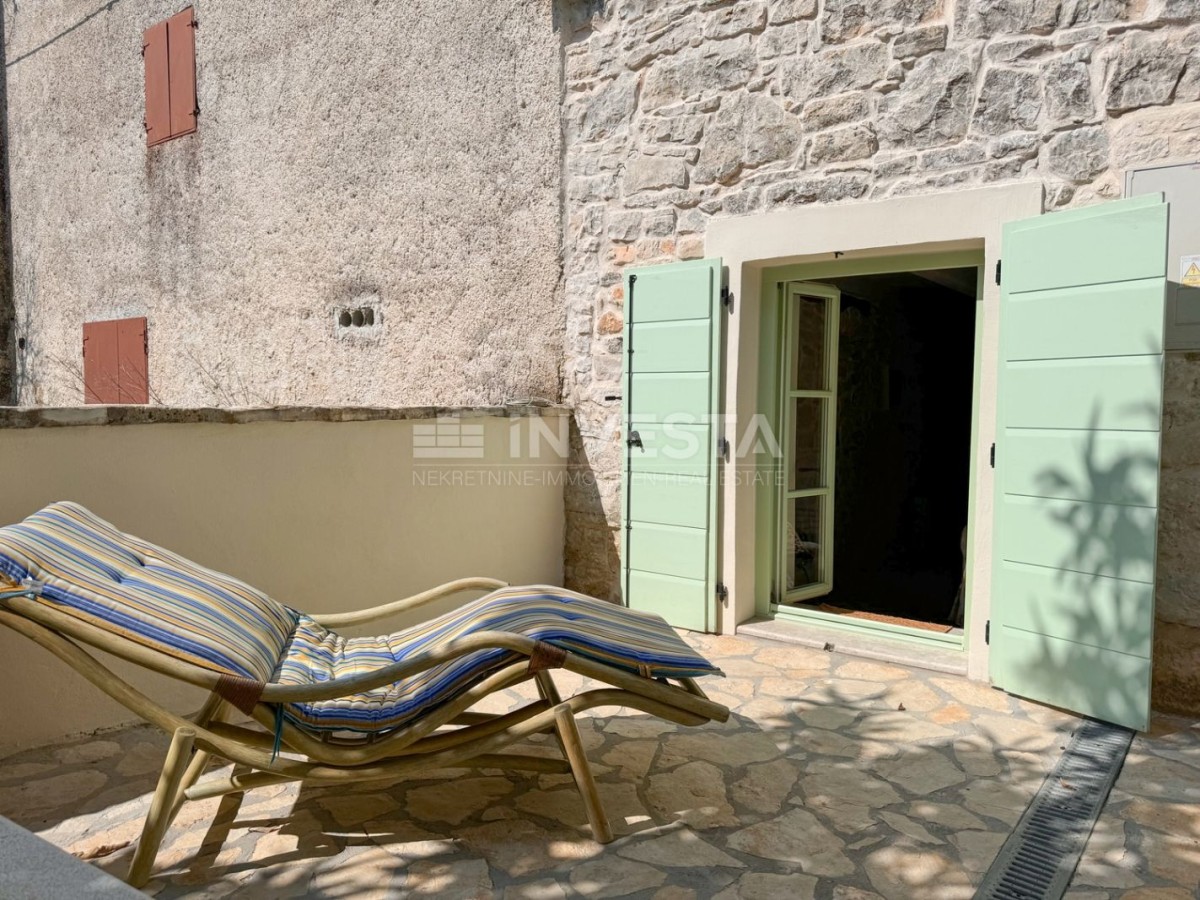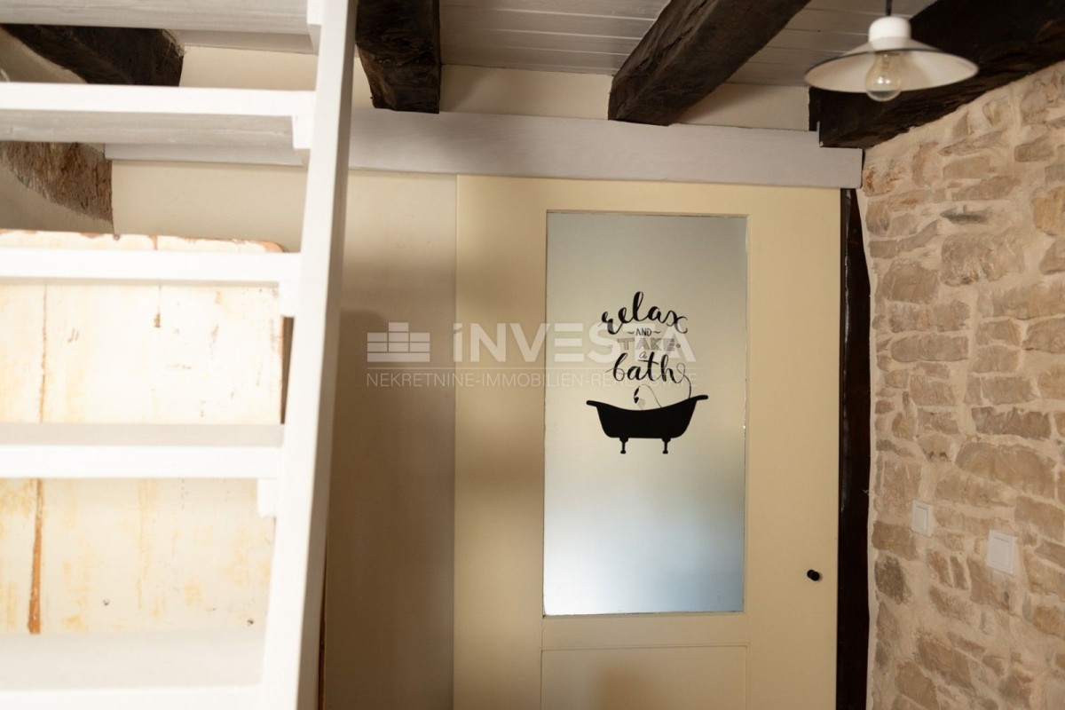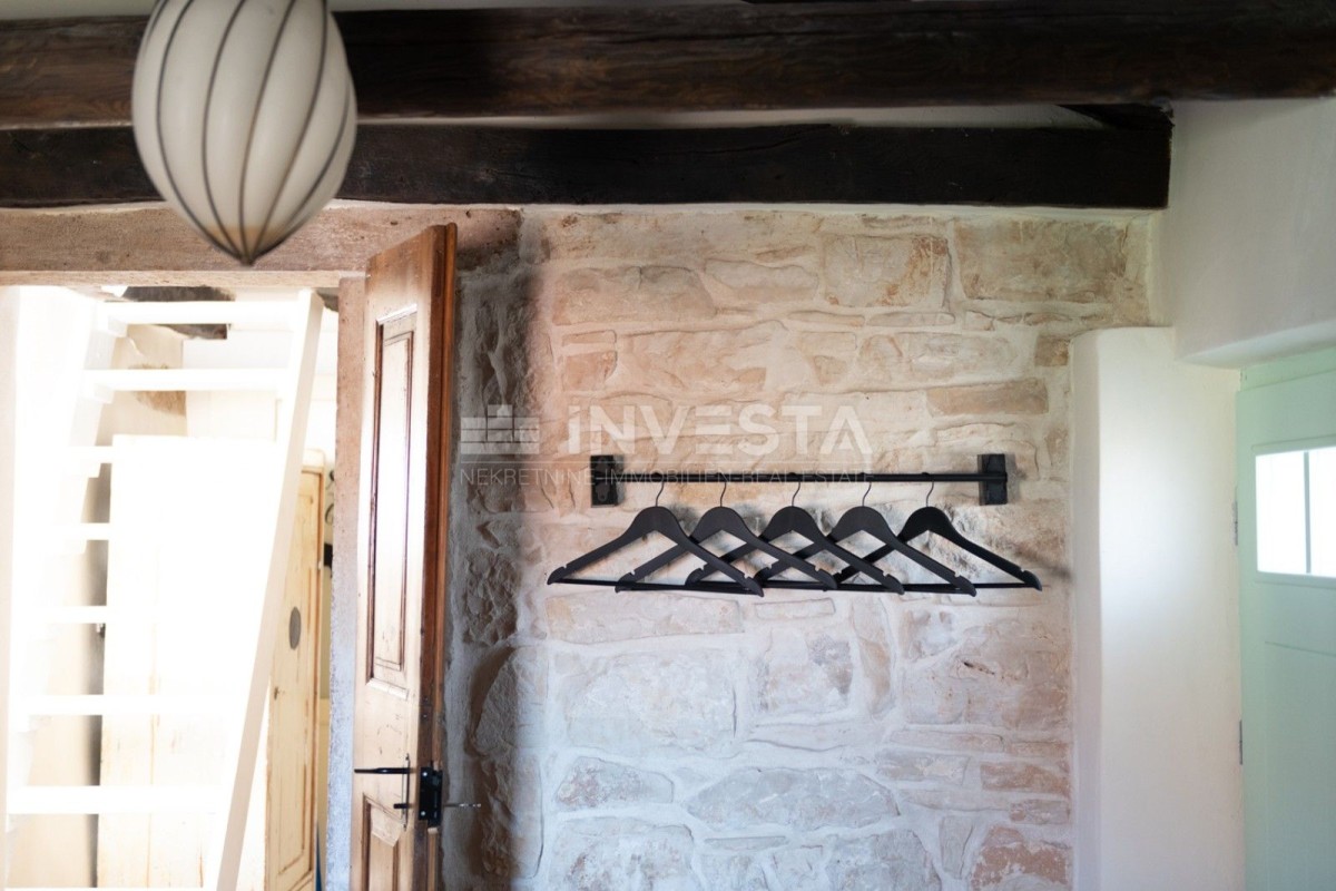 Bei der Renovierung wurde jedes Detail sorgfältig bewahrt – die originalen Steinmauern verleihen dem Raum Charakter und Seele. Ideal für Liebhaber traditioneller istrischer Architektur in ruhiger Umgebung.