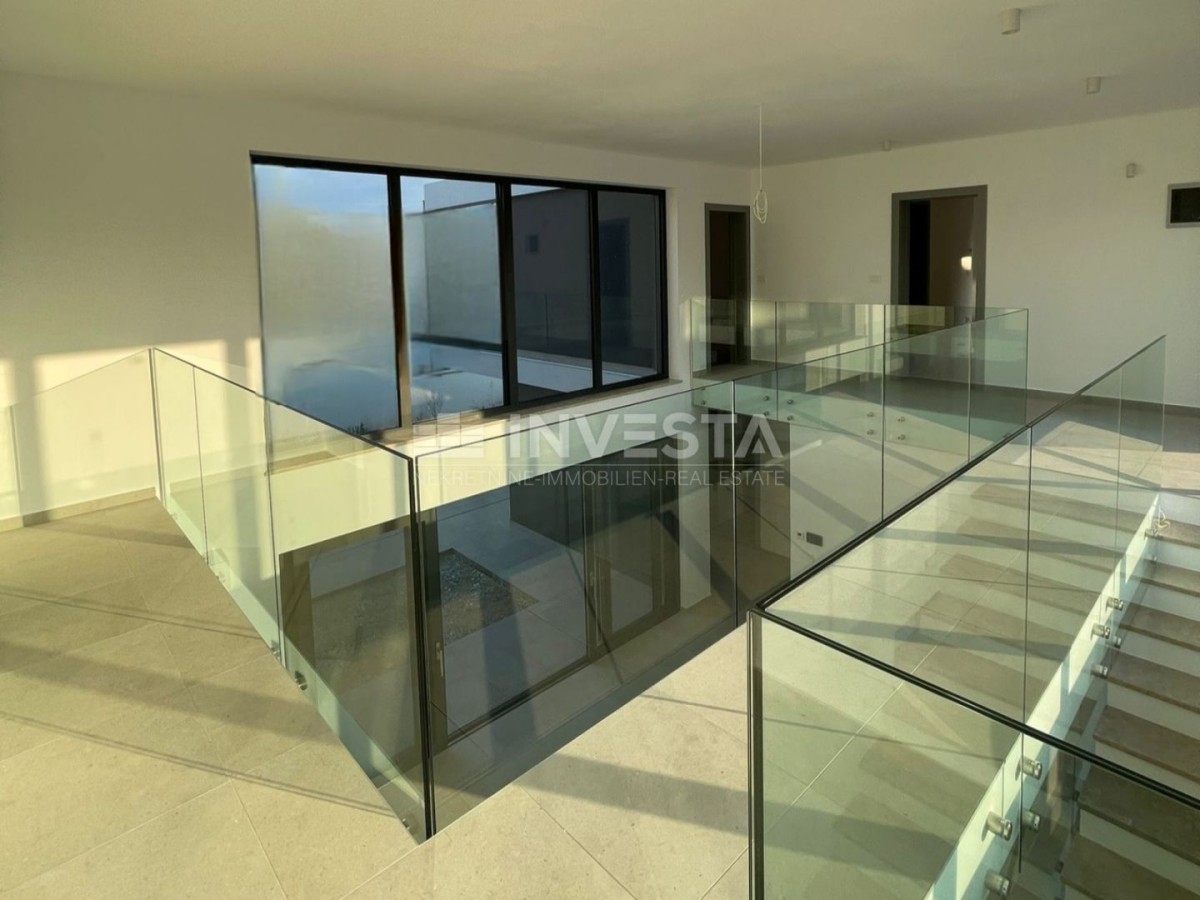 In einem ruhigen Teil der Gemeinde Medulin, nur 50 Meter vom Meer entfernt, befindet sich diese außergewöhnlich geräumige und architektonisch beeindruckende moderne Villa, die auf höchsten Komfort, Privatsphäre und Luxus ausgelegt ist.