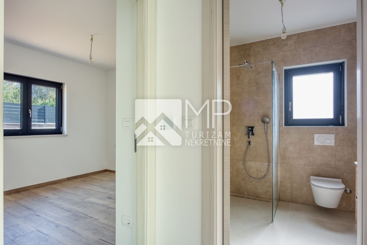 Medulin – ein moderner Neubau, aufgeteilt in drei Etagen (Erdgeschoss, 1. und 2. Obergeschoss) mit insgesamt drei Wohneinheiten, also jeweils einer Wohnung pro Etage.