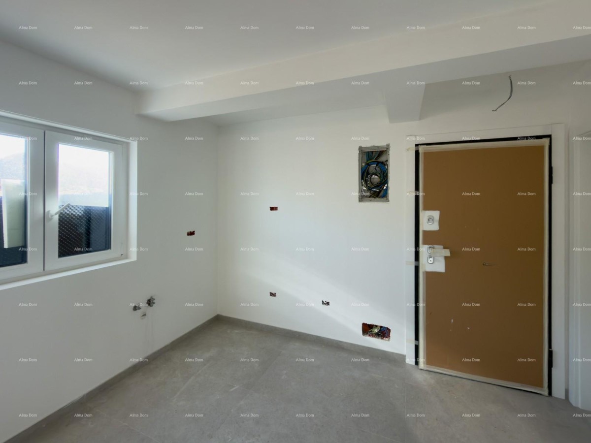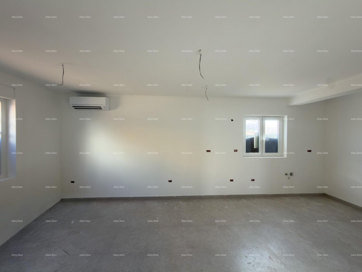 In einzigartiger Lage in Medulin, im Wohngebiet Mukalba, wird eine Erdgeschosswohnung in einem Neubau verkauft, der sich in der ersten Baureihe zum Meer befindet. Vor dem Gebäude gibt es eine Grünzone, in der keine Bebauung erlaubt ist, was einen dauerhaft offenen Blick gewährleistet.