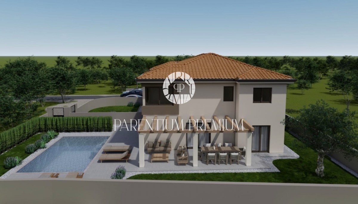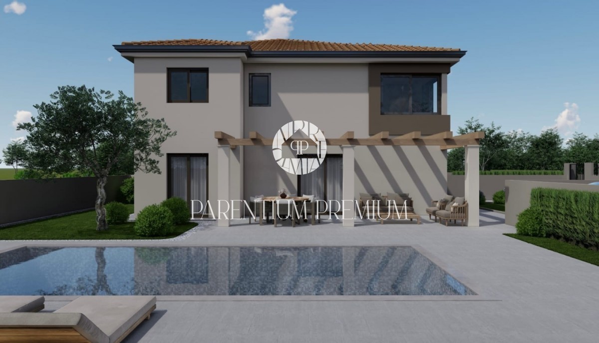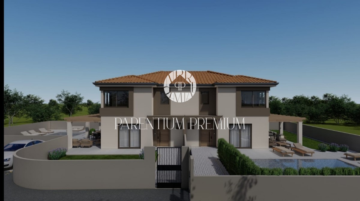 Zum Verkauf steht eine moderne Doppelhaushälfte in ruhiger Lage in der Nähe von Poreč, 10 km vom Meer entfernt.