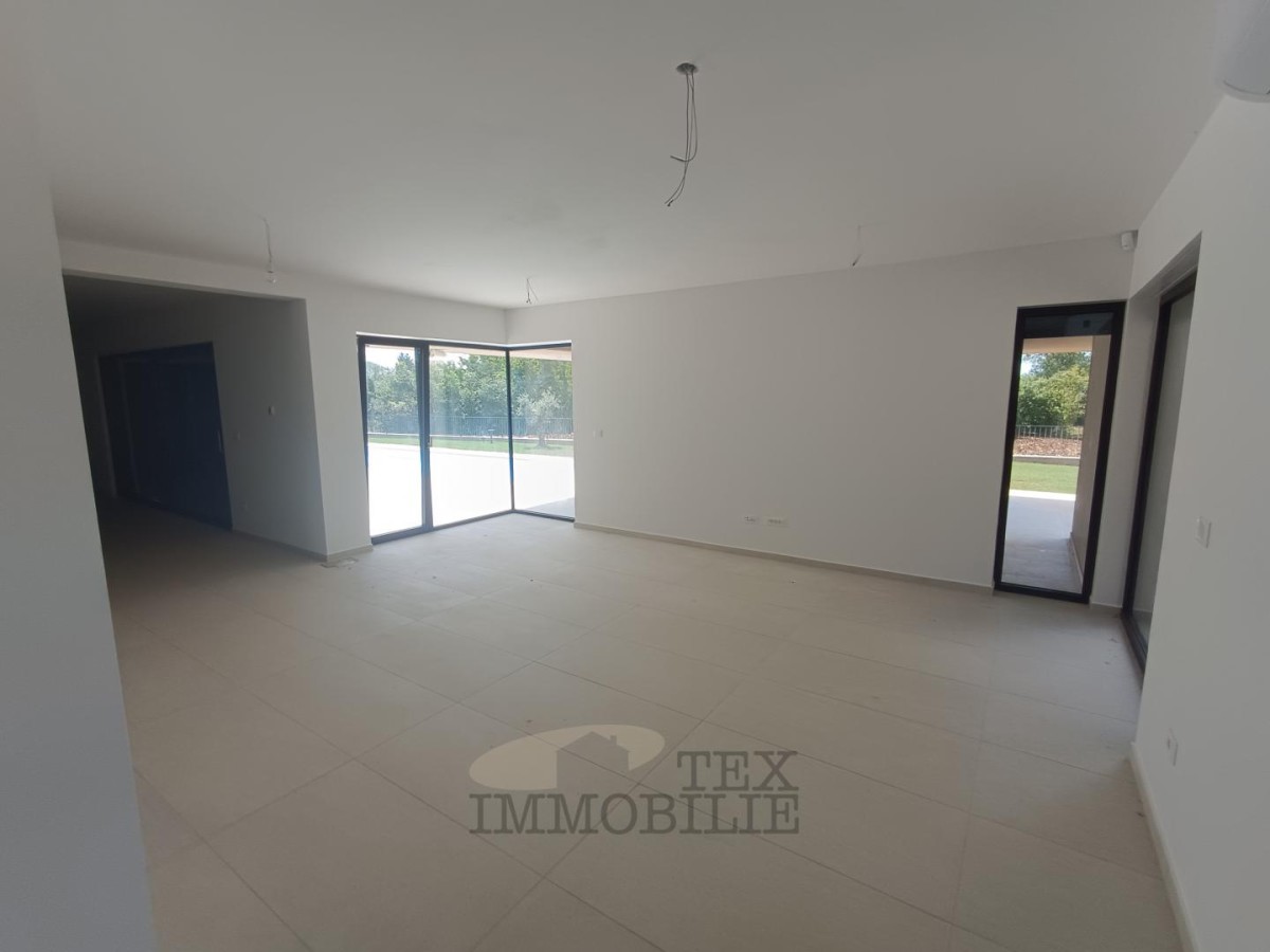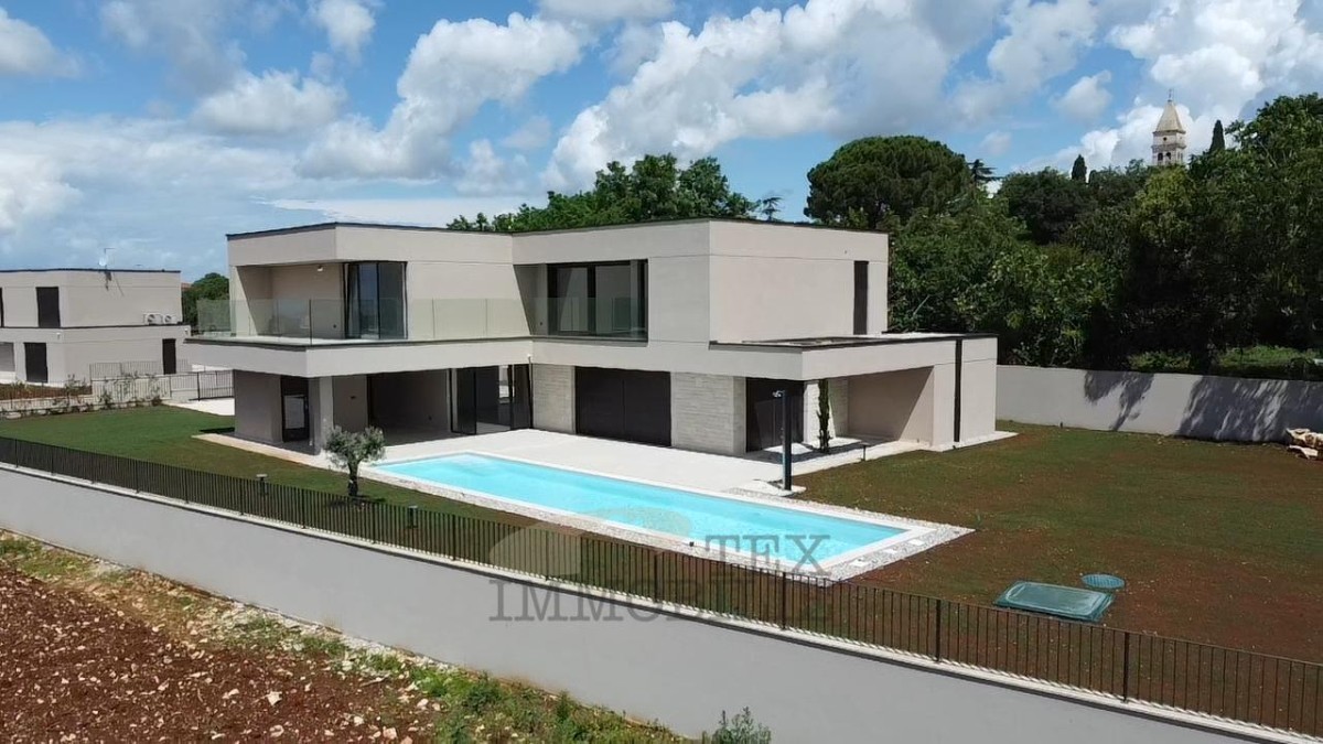Schöne Villa zum Verkauf in der Nähe von Porec im Bau. Die Villa wird aus einer Küche, einem Esszimmer und einem Wohnzimmer im offenen Raum, einer Toilette, einem Badezimmer, einem Schlafzimmer, einer Speisekammer, einem Weinlager, einer Sauna, einem Technikraum und einer überdachten Terrasse bestehen, während sich im Obergeschoss drei weitere Schlafzimmer mit jeweils eigenem Bad befinden werden Eigenes Bad. Außerdem wird ein Zimmer Zugang zur Terrasse haben. Fundamente, Bodenplatten und Zwischengeschossplatten werden nach statischen Erfordernissen in Beton hergestellt. Das Haus wird im Erd- und Obergeschoss über eine elektrische Fußbodenheizung verfügen. Zusätzlich wird das Haus mit einer Videoüberwachung und einer Bewegungsalarmanlage ausgestattet. Die Außenschreinerei besteht aus Aluminium, die Innentüren aus MDF oder Massivholz. Im Wohnzimmer ist ein Kamin vorhanden. Das Land wird mit einem Bewässerungssystem bedeckt und der Pool wird mit Folie abgedeckt.