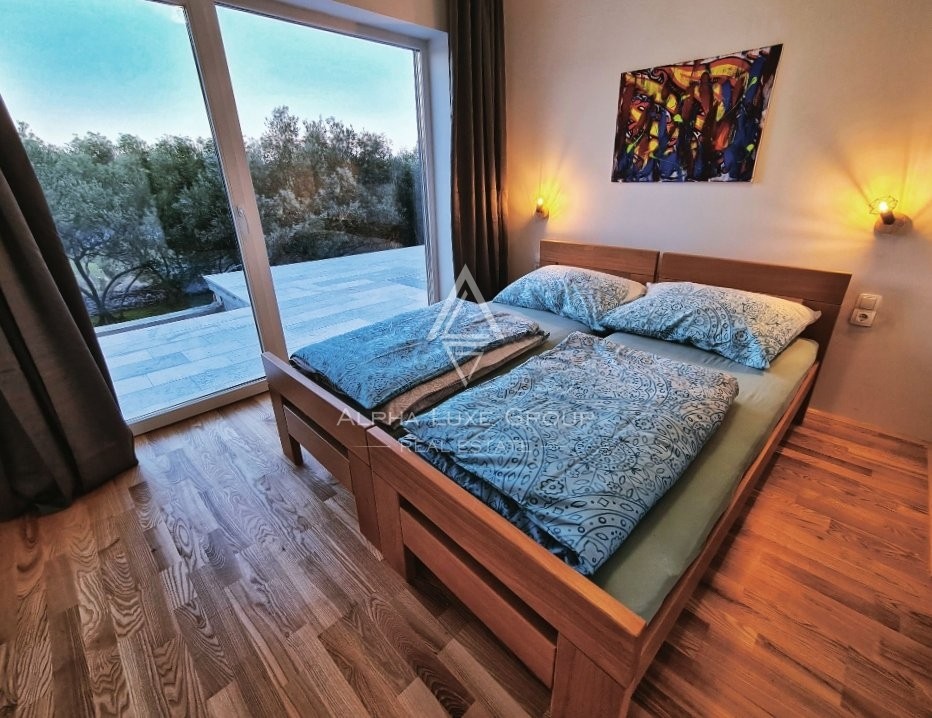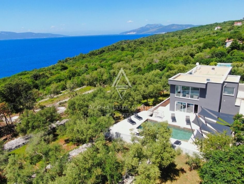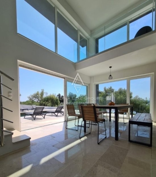 Das kürzlich errichtete Herrenhaus wurde unter Verwendung hochwertiger Materialien errichtet. Das moderne und dezente Dekor unterstreicht die Geräumigkeit und verfügt über Glaswände, die viel natürliches Licht und einen ungehinderten Blick auf das Meer ermöglichen.