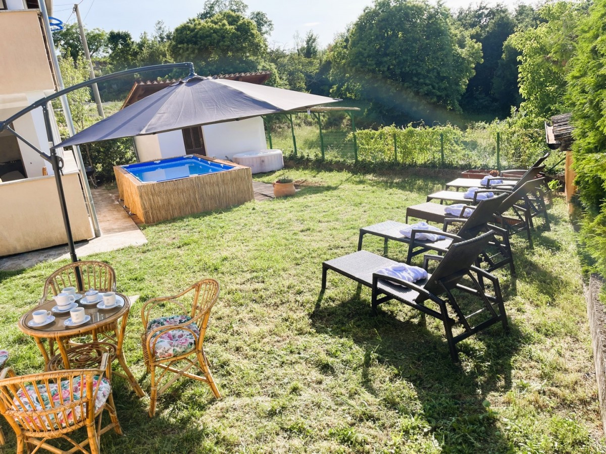 Im Garten befindet sich ein kleineres Haus, das in eine Sommerküche umgewandelt werden kann. Zudem besteht die Möglichkeit, im Garten einen Swimmingpool anzulegen.