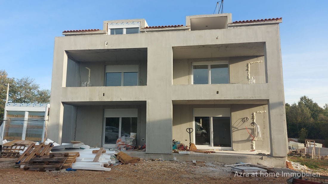 In einer Entfernung von etwa 9 km von der Stadt und dem Meer, 1 km von der Autobahnauffahrt, am Ende des Dorfes, an einem ruhigen Standort, wird dieses Gebäude mit insgesamt fünf Wohnungen errichtet. Die Wohnungen werden im „Schlüsselfertig“-System fertiggestellt.