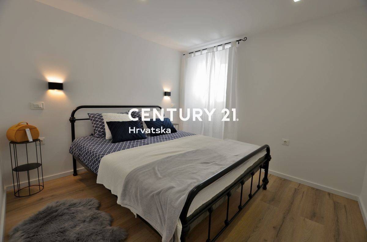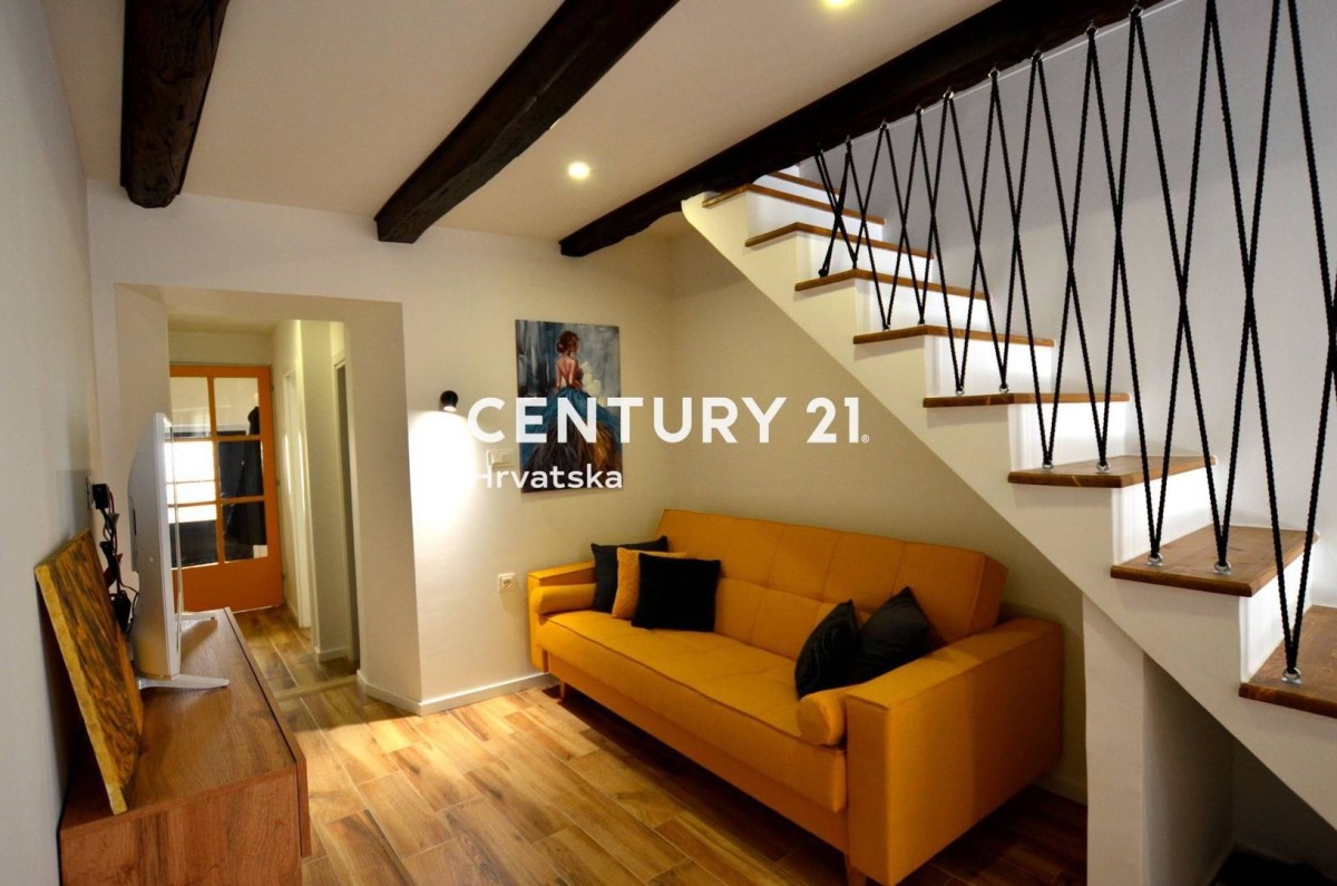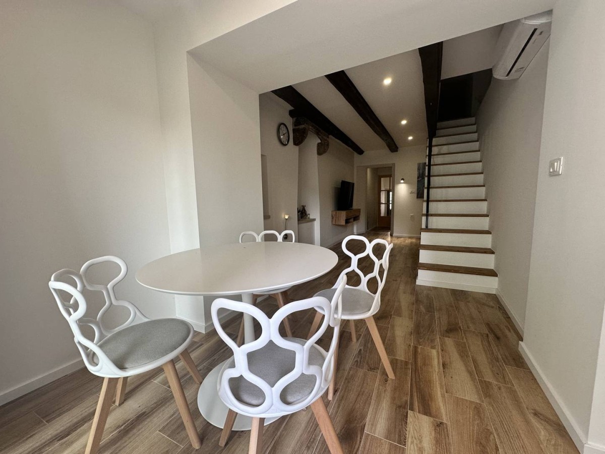 In der Nähe des historischen Stadtkerns von Pazin verkaufen wir ein renoviertes und komplett möbliertes Reihenhaus mit schönem Hof und einer Gesamtfläche von 106 m2 (überdachte Terrasse, Grünfläche, Parkplätze).