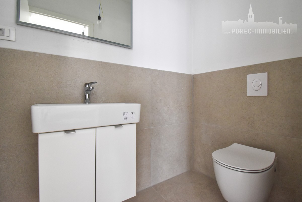 In einem neu errichteten Gebäude in einem charmanten Touristenort in der Nähe des malerischen Poreč steht eine geräumige Wohnung zum Verkauf. Das moderne Gebäude umfasst nur vier Wohneinheiten und bietet seinen Bewohnern einen komfortablen und intimen Wohnraum.