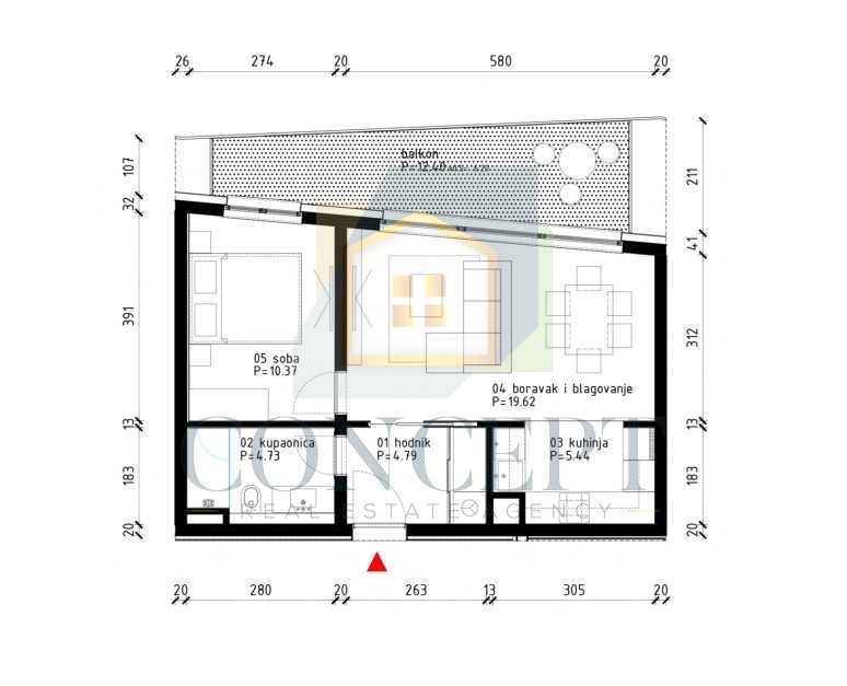 Zu verkaufen ist eine Wohnung mit einer Fläche von 52,45 m² im Erdgeschoss eines neuen Wohngebäudes in Poreč, nur 800 m vom Meer entfernt. Die Wohnung besteht aus einem Eingangsflur, einem Badezimmer, einem Schlafzimmer sowie einem Wohnzimmer mit Küche und Essbereich, das einen Zugang zum Balkon bietet.