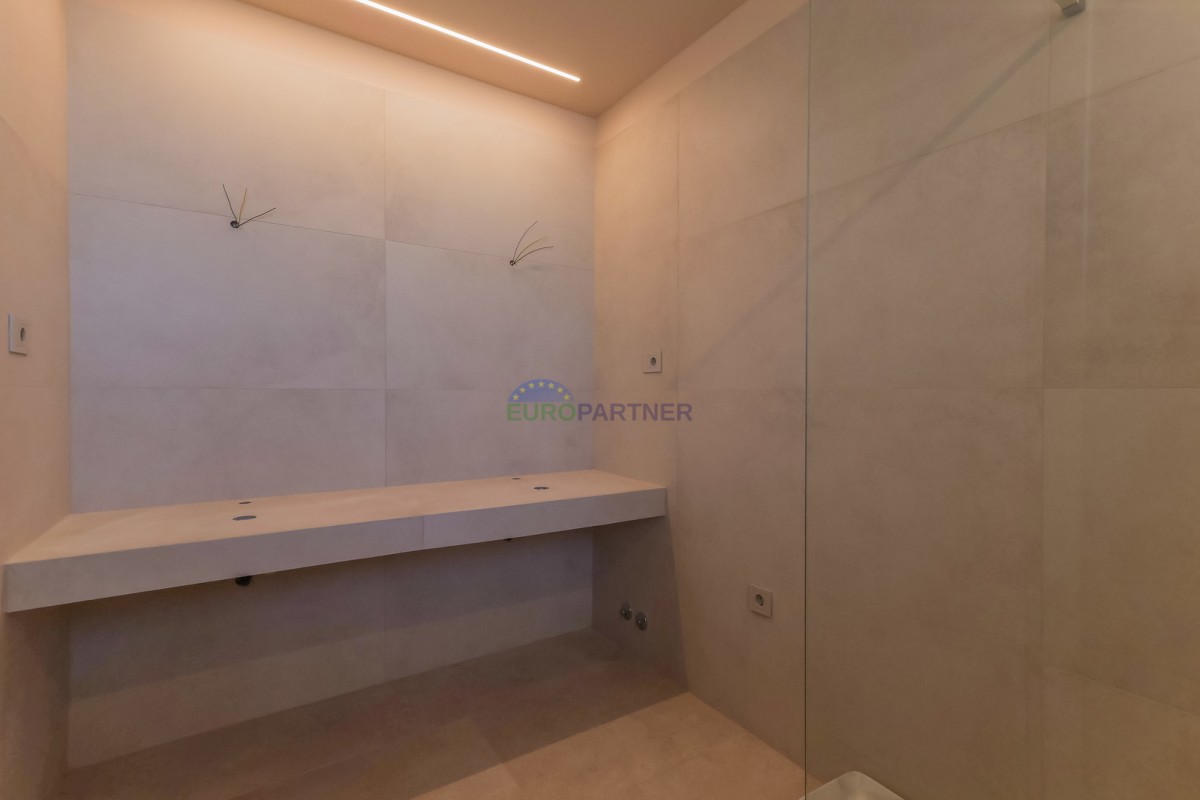 Die Villa umfasst eine Gesamtnettowohnfläche von 251 m2, verteilt auf das Erdgeschoss und den ersten Stock. Zusätzlichen Wert bietet eine große Dachterrasse von 87,4 m2, die einen Panoramablick auf das Meer bietet – ein idealer Ort zum Entspannen bei Sonnenuntergang.