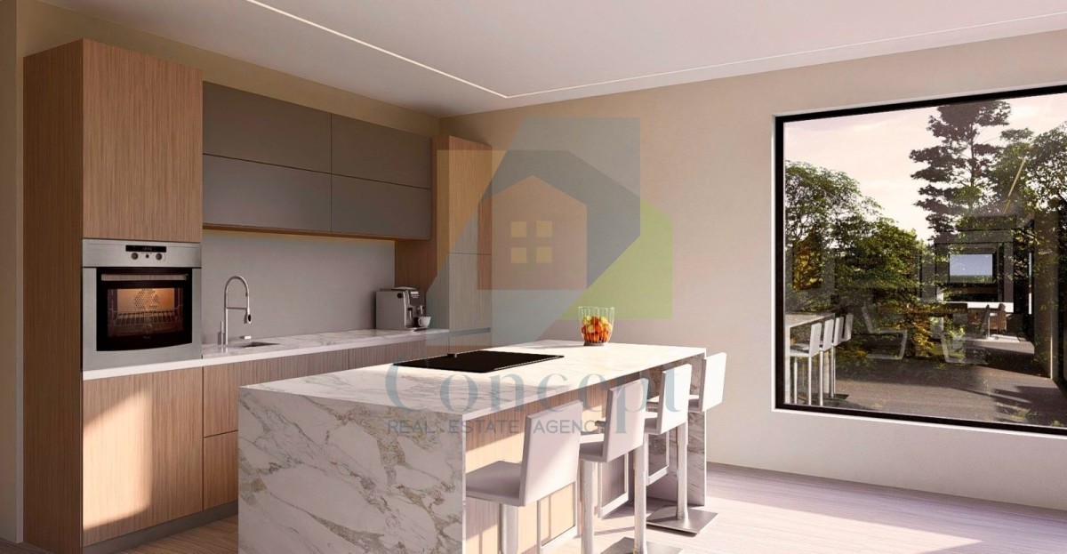 Die Wohnung besteht aus einem geräumigen Wohnbereich, einer offenen Küche und einem Essbereich mit Zugang zu einer überdachten Terrasse von 36 m². Der Grundriss wurde so gestaltet, dass er einen angenehmen Aufenthalt mit viel natürlichem Licht ermöglicht.
